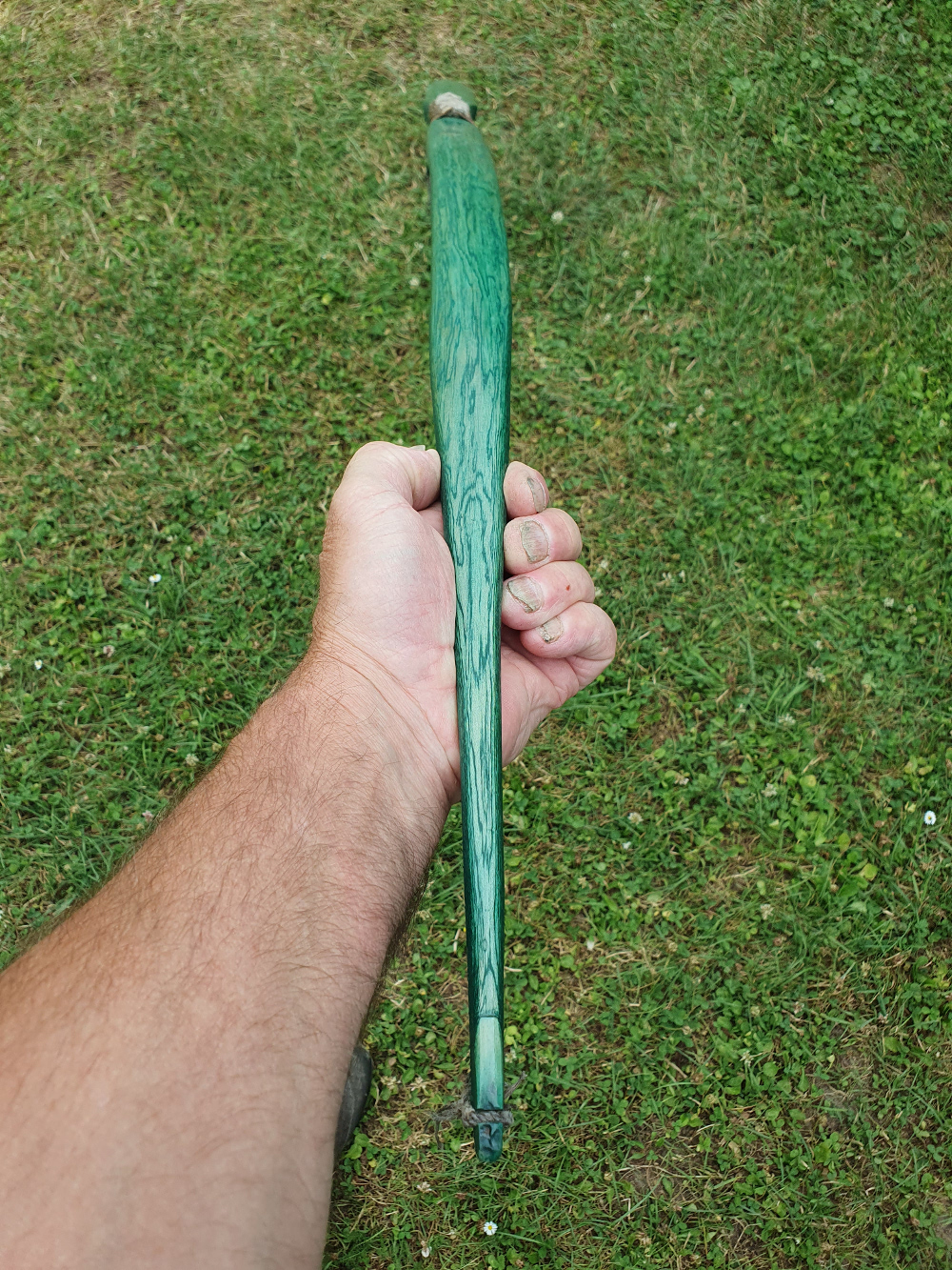 Die Farbe gefällt mir sehr gut, wie sie am Rücken die Ringe hervorhebt, sieht toll aus... Ich hätte die Farbe nur am Rücken aufgetragen um am Bauch was vom doch schönen Ulmenholz zu sehen und durch dunkle Kontrast Punkte aufgelockert, wie z. B. schwarzes Griffleder...