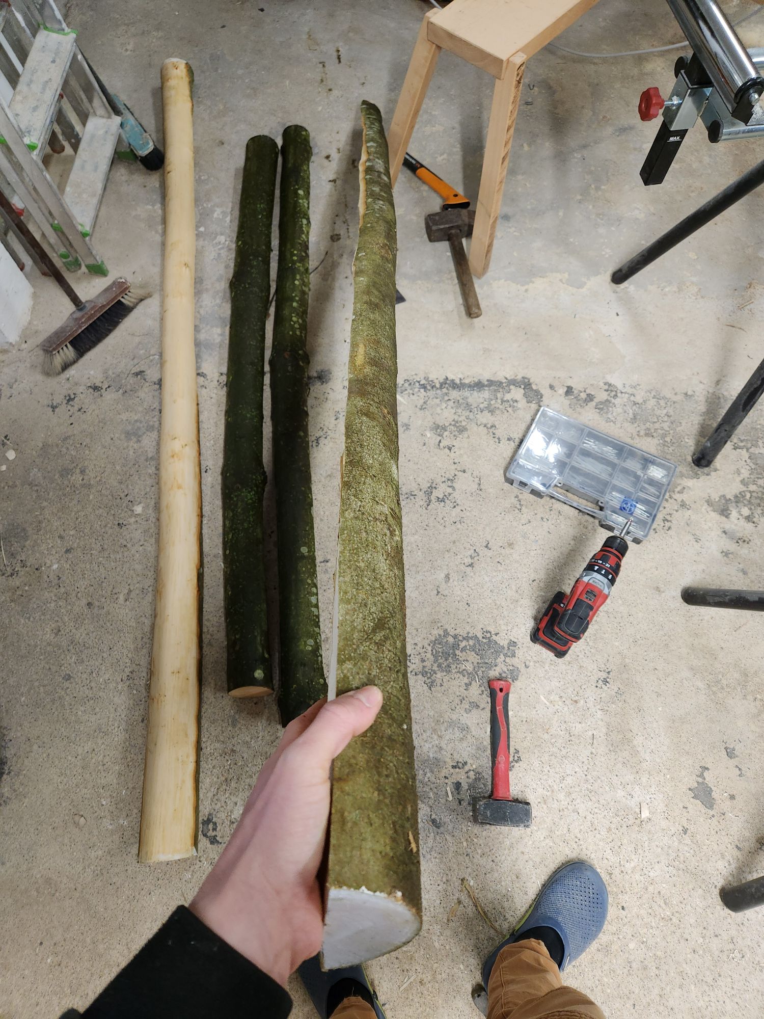 Beim langen Stave hab ich noch die Rinde entfernt und die Enden versiegelt. Die anderen sind noch unberührt und alle liegen fürs erste draußen.