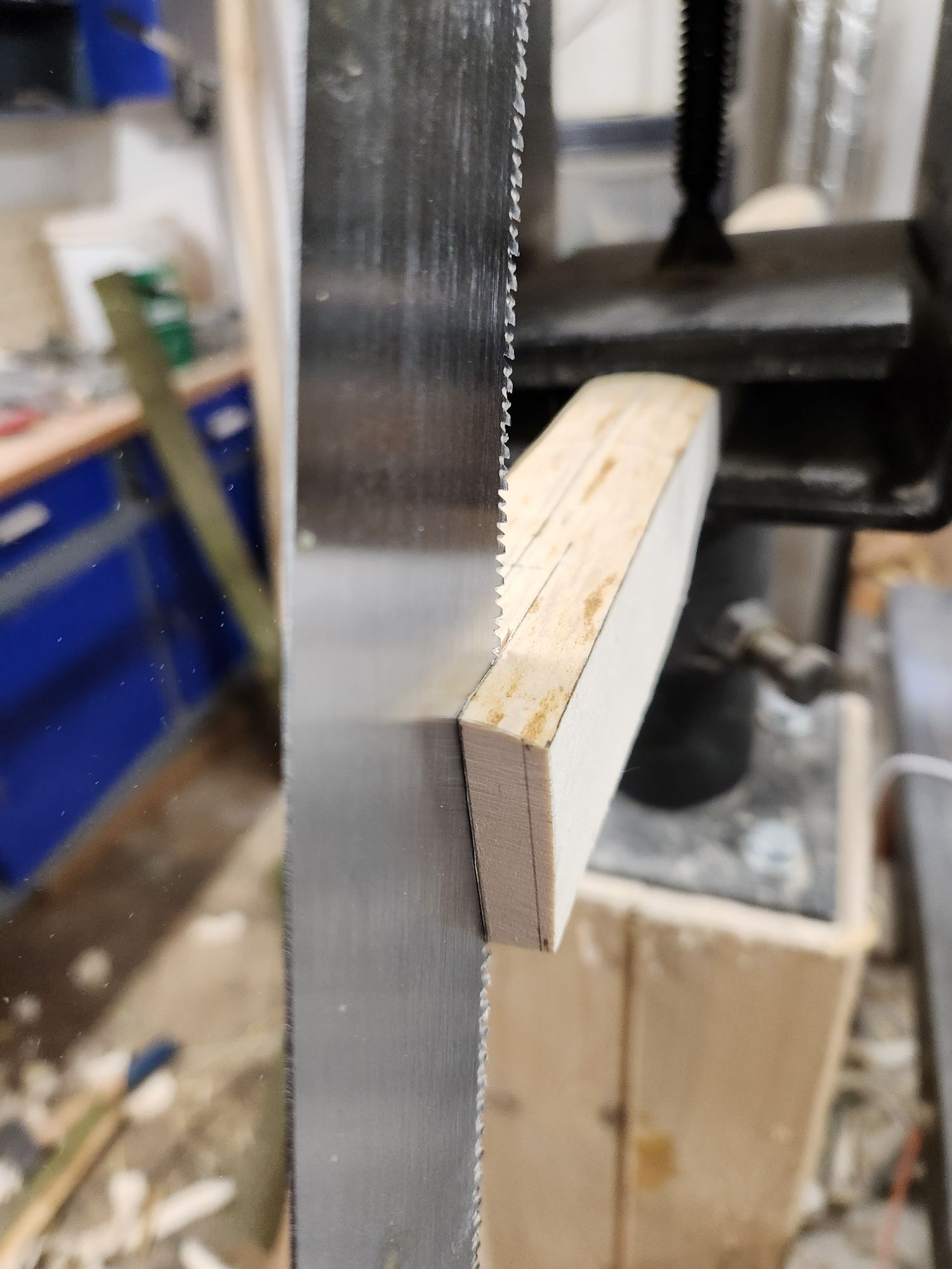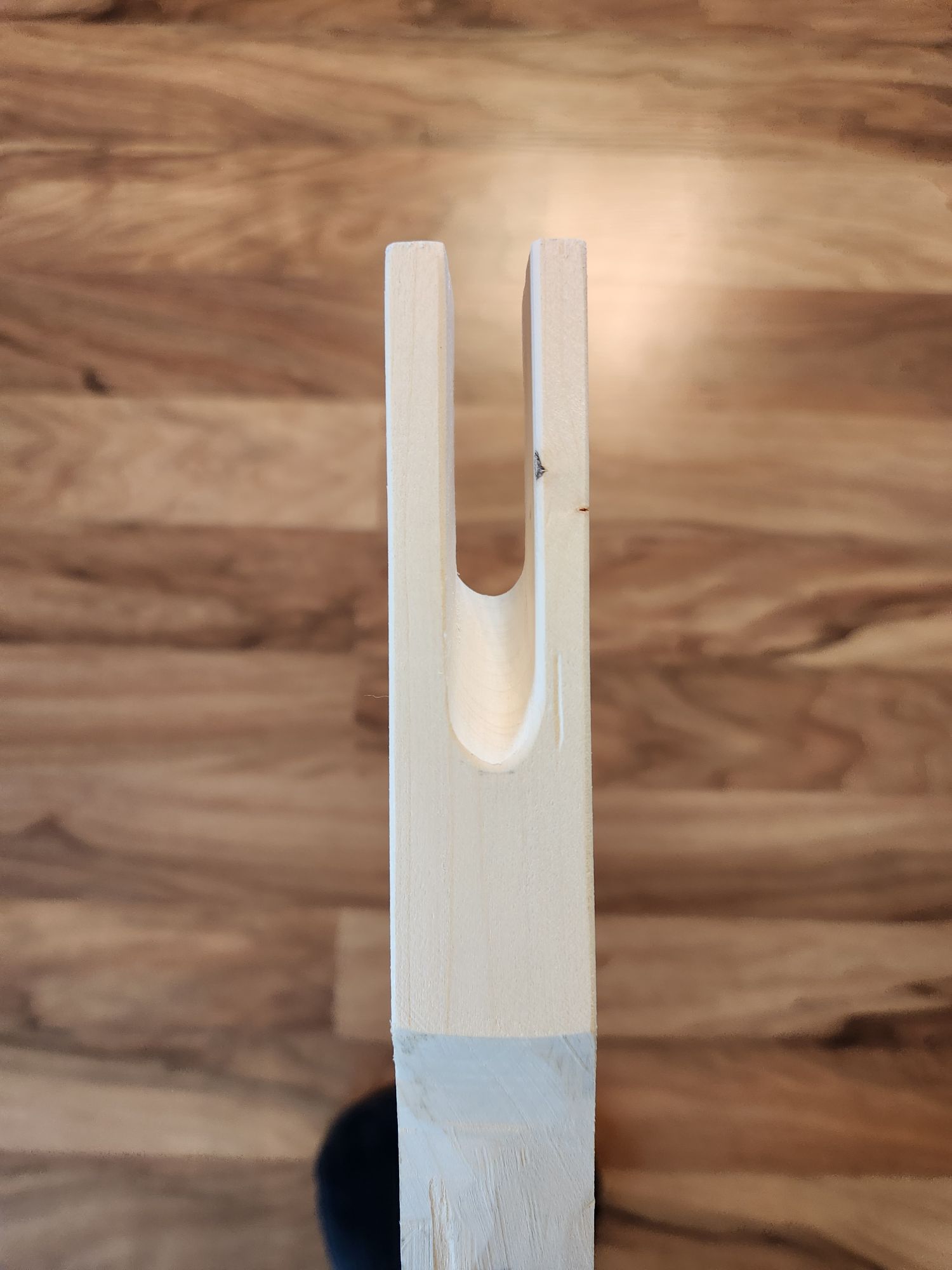 Ich habs dann ganz gut hin bekommen. Nur was ich nie wieder verwenden werde ist die Laubsäge mit dem Sägeblatt, dass in alle Richtungen schneiden kann. Unmöglich damit einen halbwegs geraden Schnitt zu machen. Dabei hab ich mir leider sogar ein wenig in die Gabel seitlich hinein geschnitten.