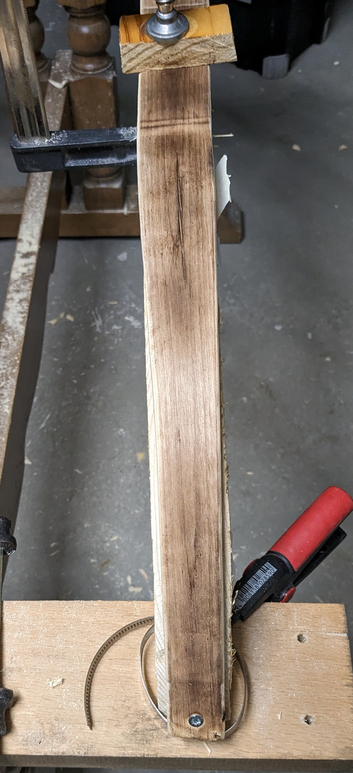 Zuerst wollte ich nochmal mit Dampf biegen, hatte dann aber die Eingebung zwei Keile einzusetzen, so dass nichts mehr zurück kriecht...