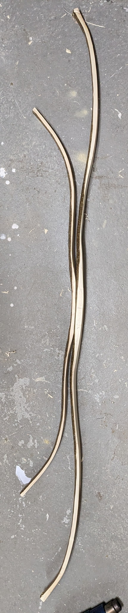 Den Hauptbogen mit aktuell noch 180cm Länge habe ich zu den Enden hin noch etwas mehr geflippt und die äußeren Wurfarme auch nochmal geröstet.