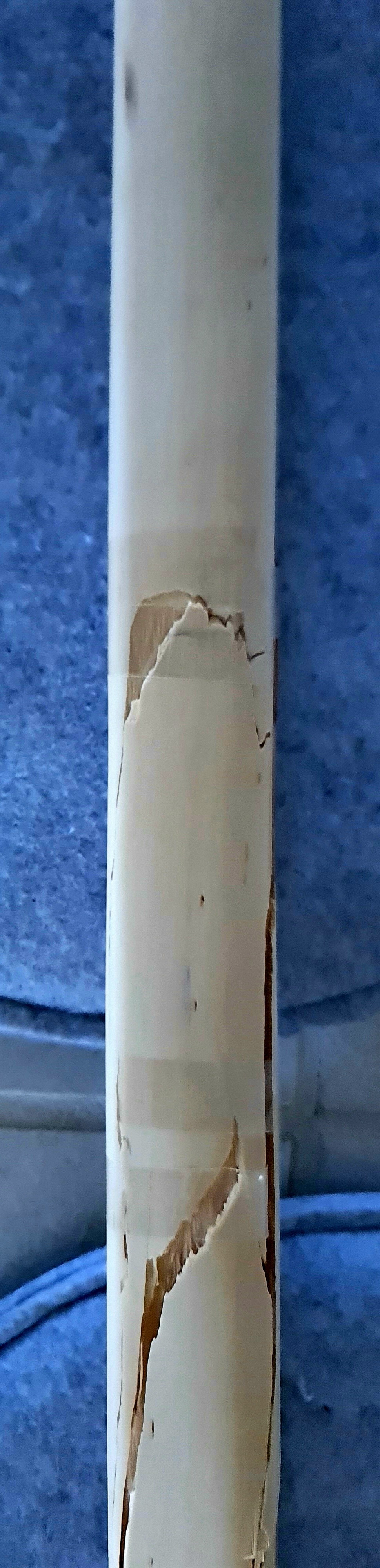 Auf dem letzten Bild ist oben der vermutete Ausgangspunkt zu sehen (ziemlich genau die Mitte des Bogens, Bruch ging vom Splint aus).