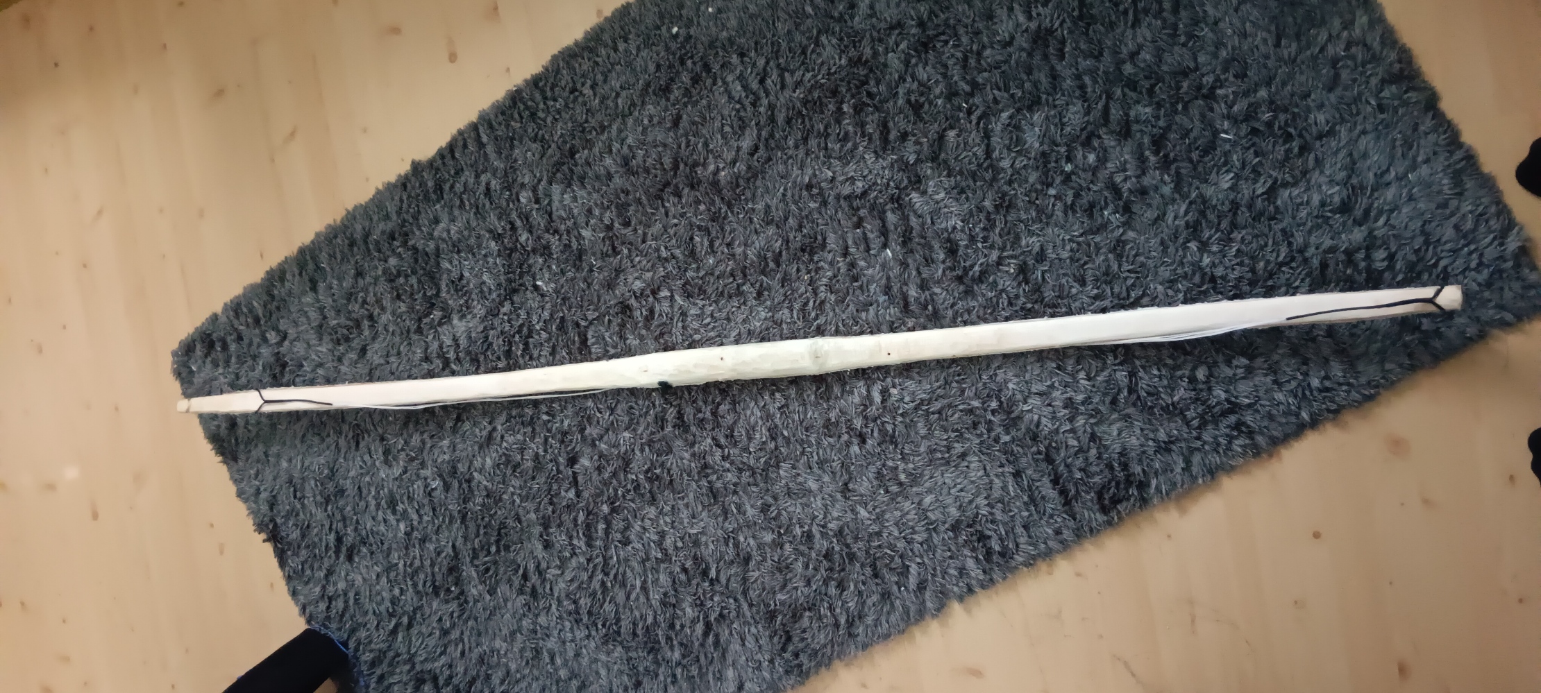 Erst der Bogen (Haselnuss mit Leinenbacking und leider ein wenig Set : Und nun der Kirsche Stave (Unsicher ober Zierkirsche oder Vogelkirsche):