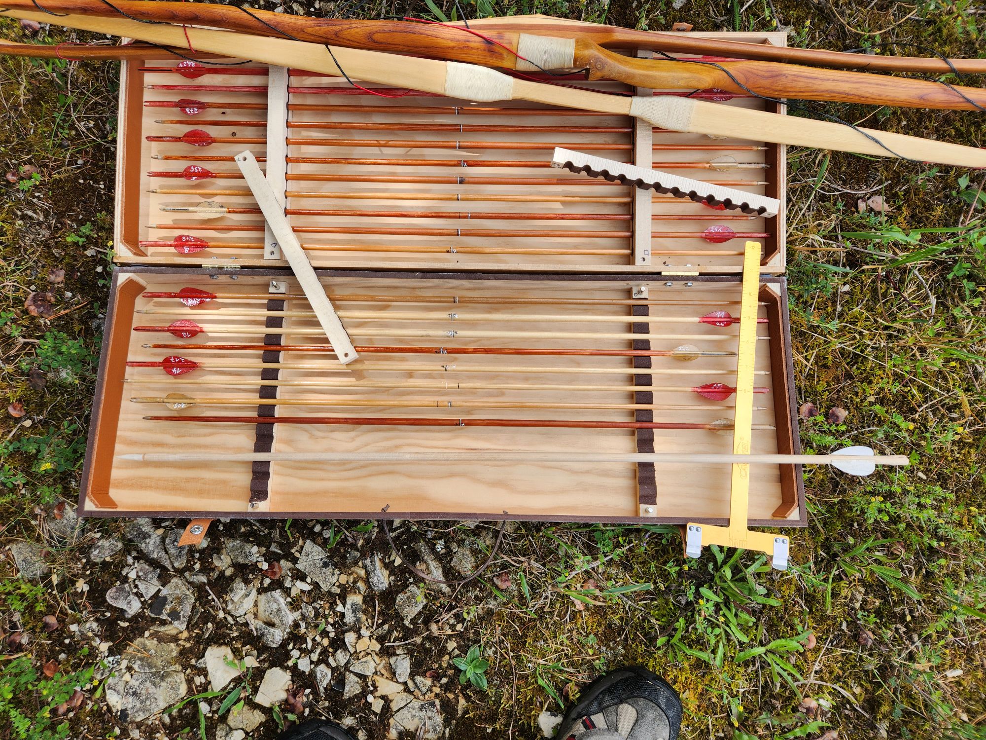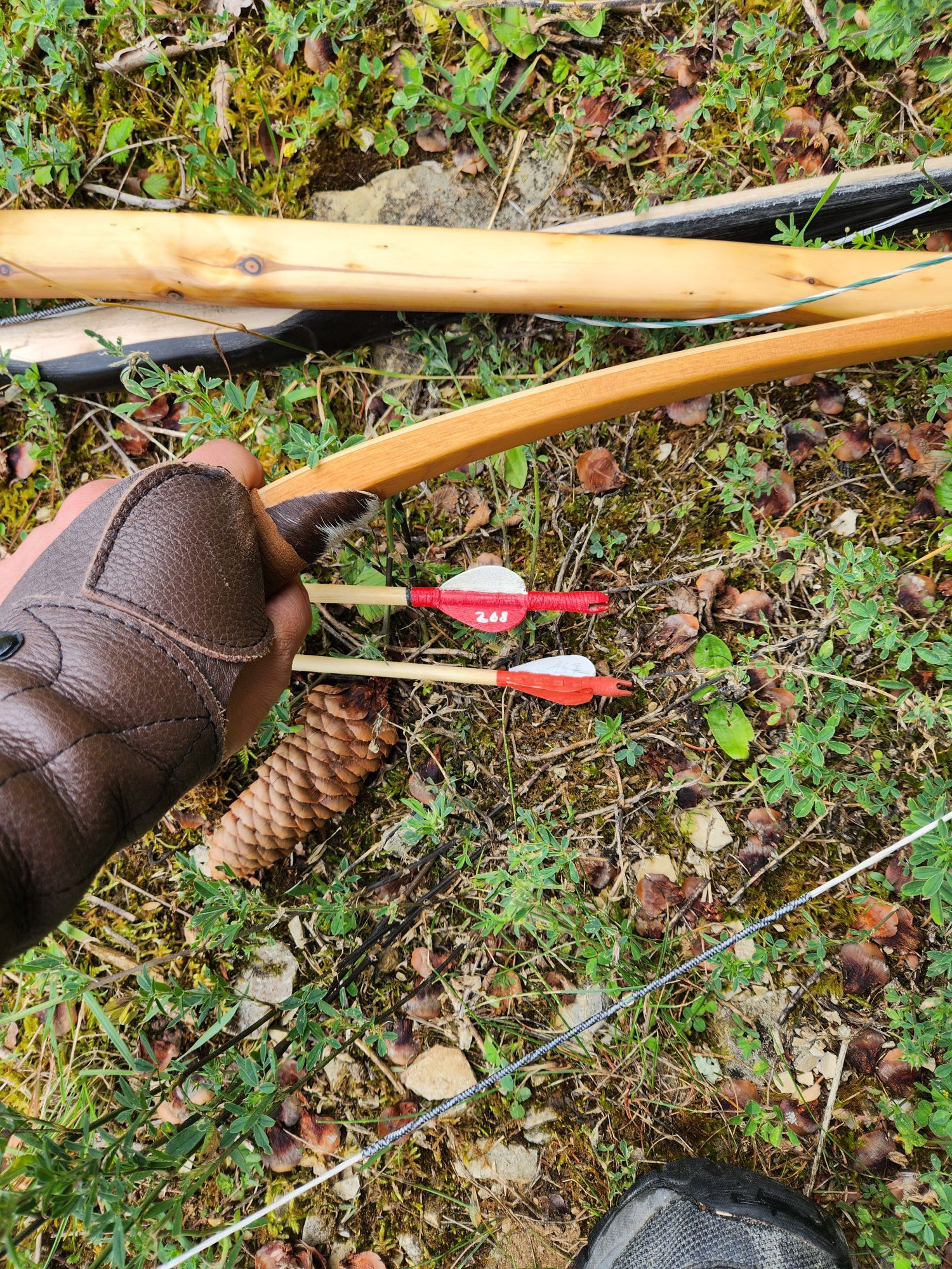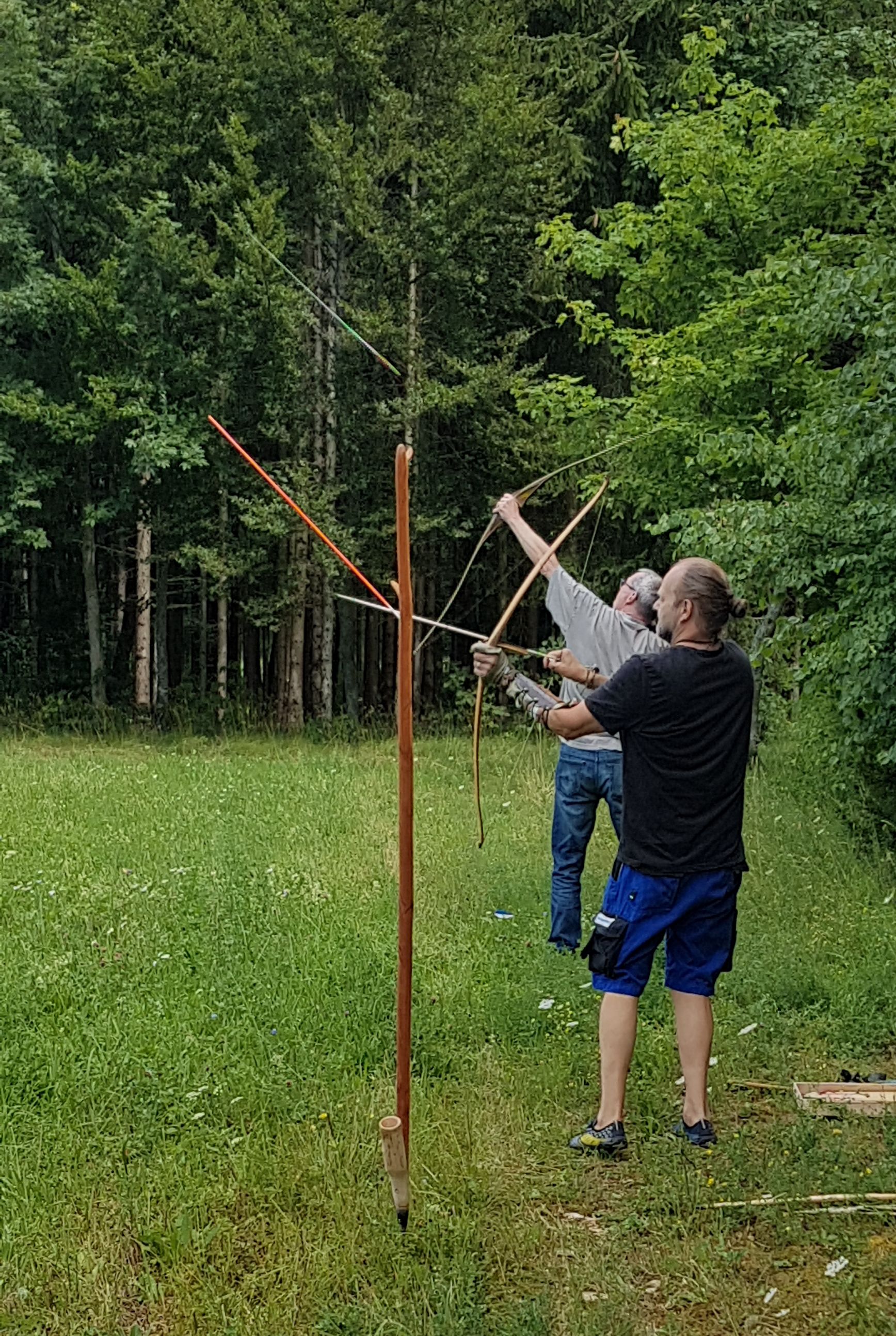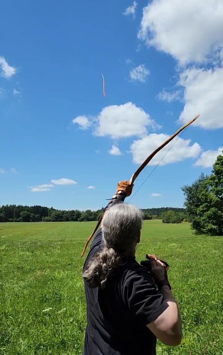 Am besten abgeschnitten hat aber tatsächlich mein Komposit mit meinem selbst gemachten Pfeil. Vermutlich wegen der hohen Auszugslänge von 29". Der flog mit 350 grain erstaunliche 303m. Der Bogen müsste um die 45-50# bei dem Auszug haben. Ich denke fürs nächste mal werd ich Pfeile mit der selben Länge machen, die aber einen stärkeren Tapper haben und somit bei gleichem Auszug leichter sind.