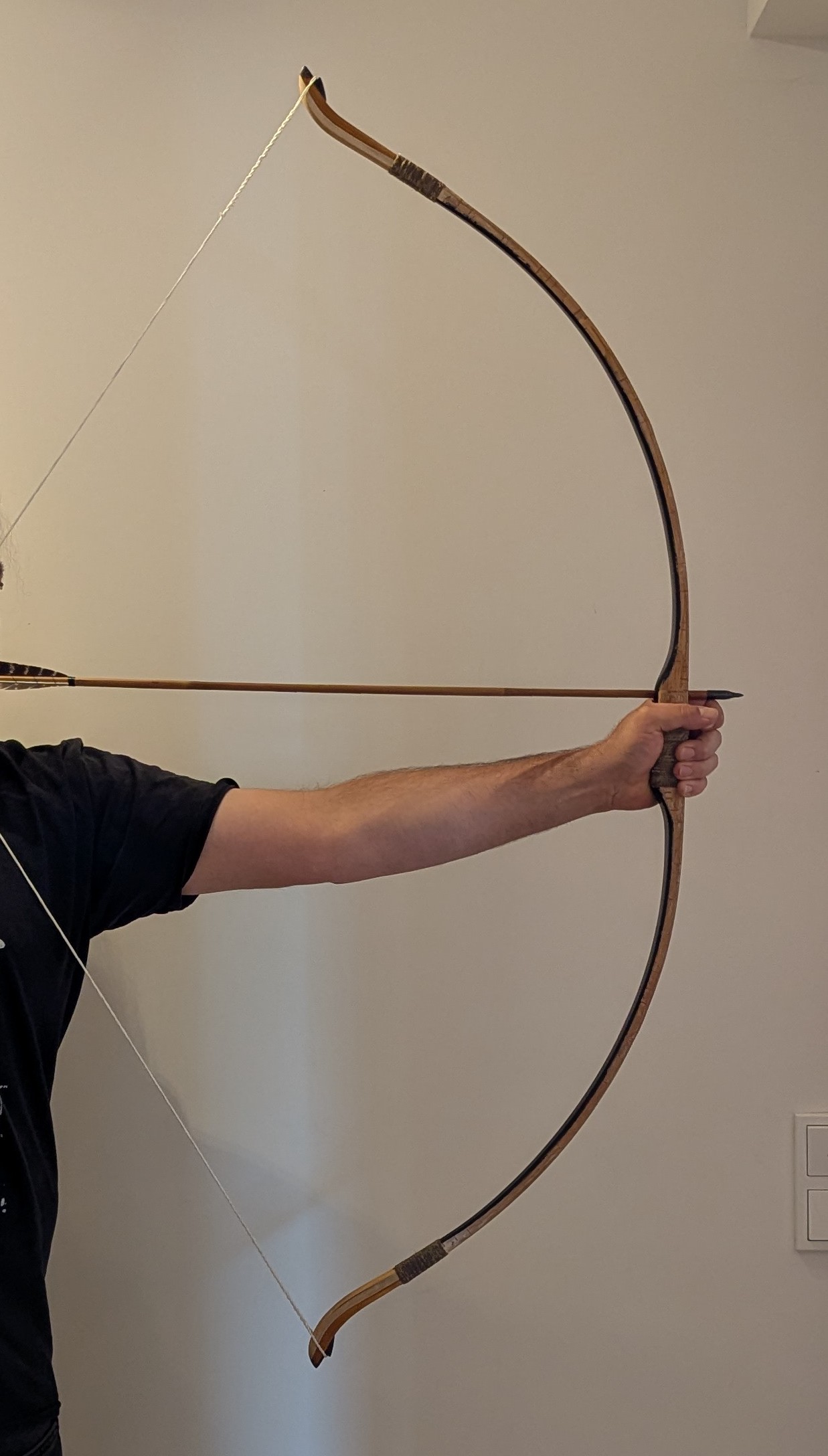 Vor ein paar Wochen hat der Bogen auf dem Rücken einen Belag aus Birkenrinde verpasst bekommen.