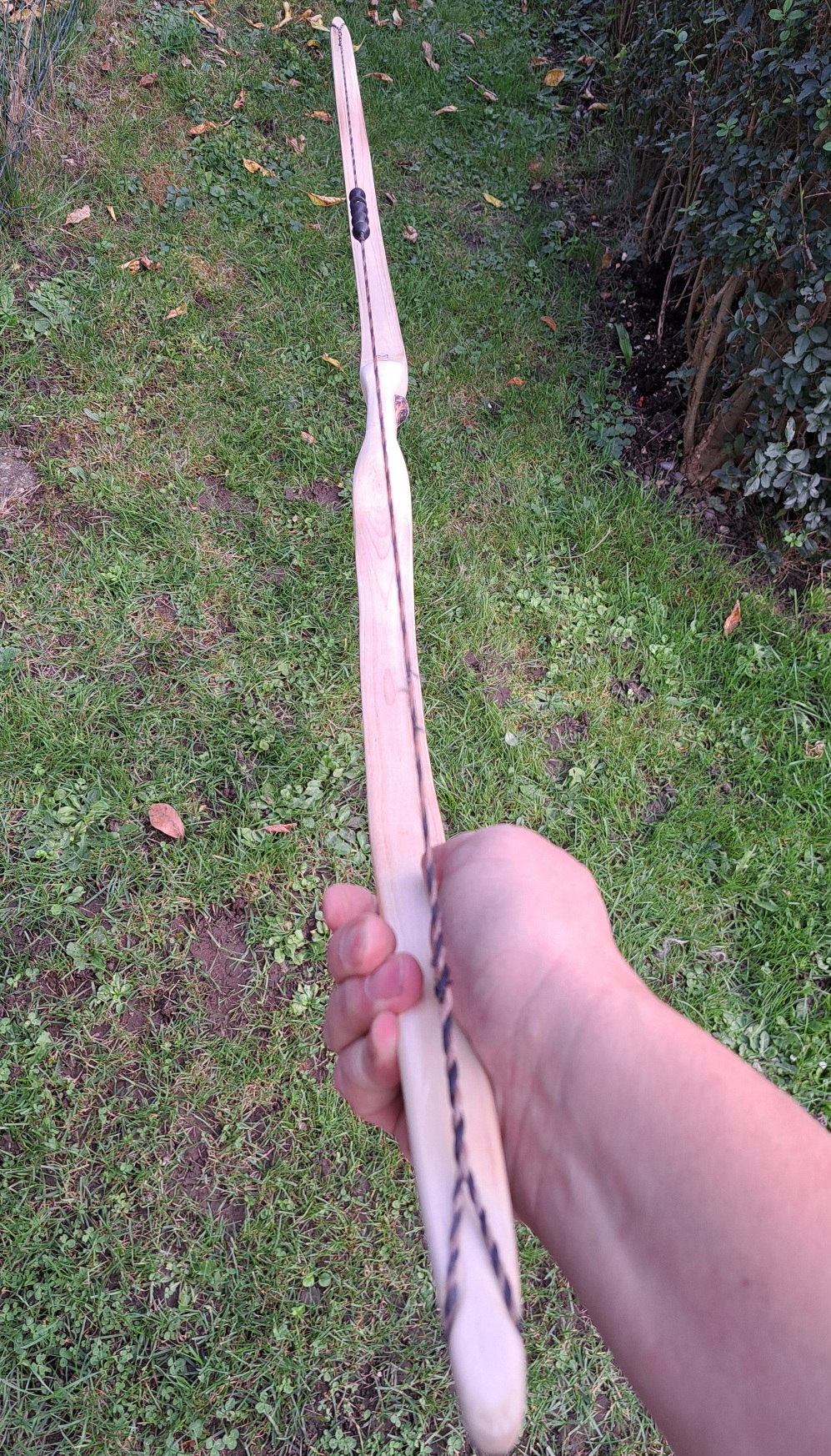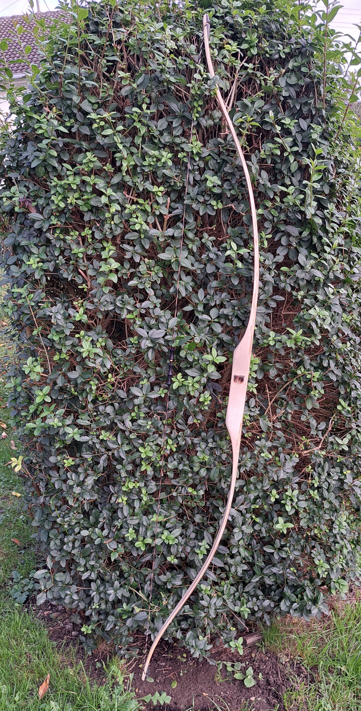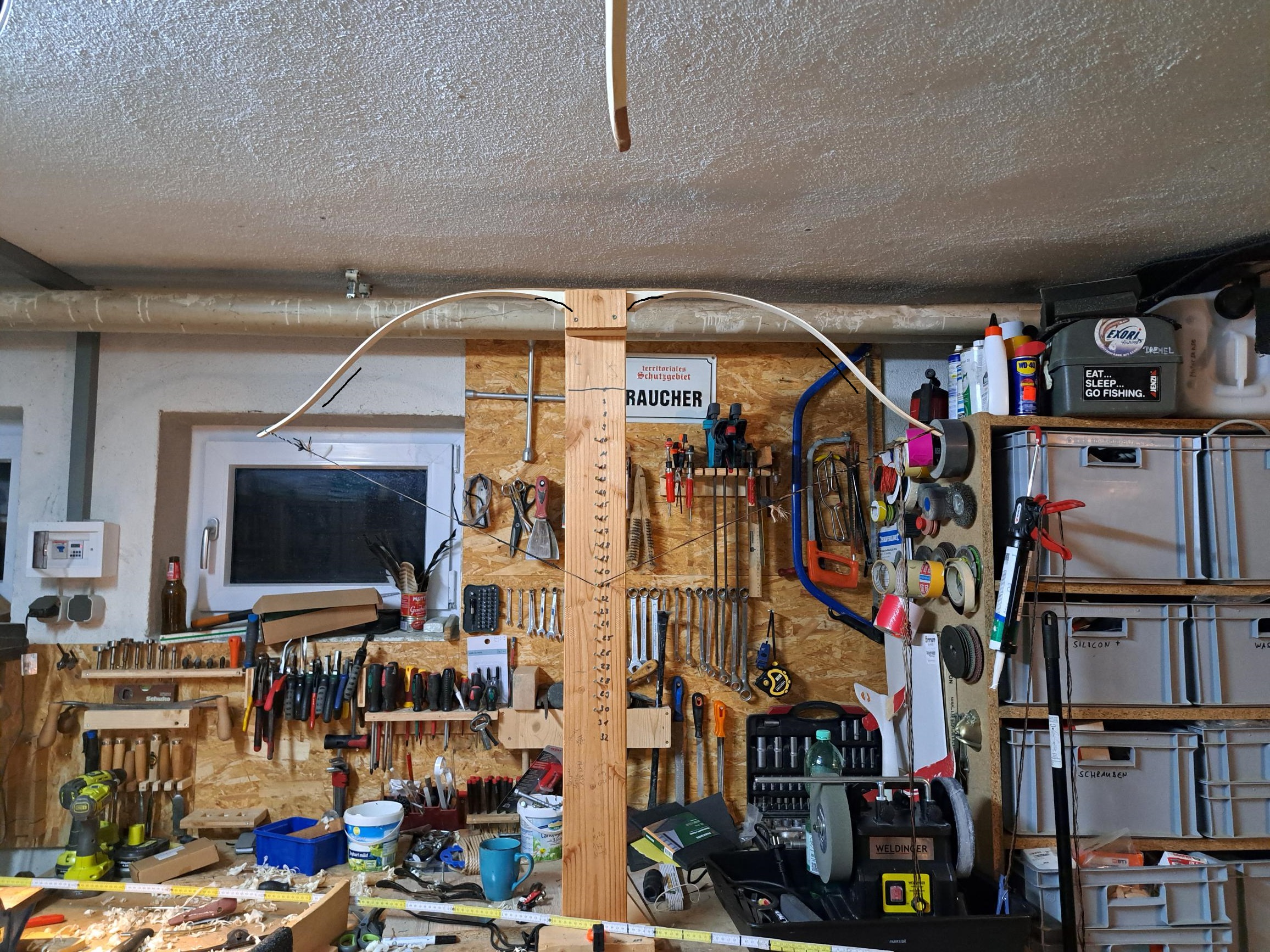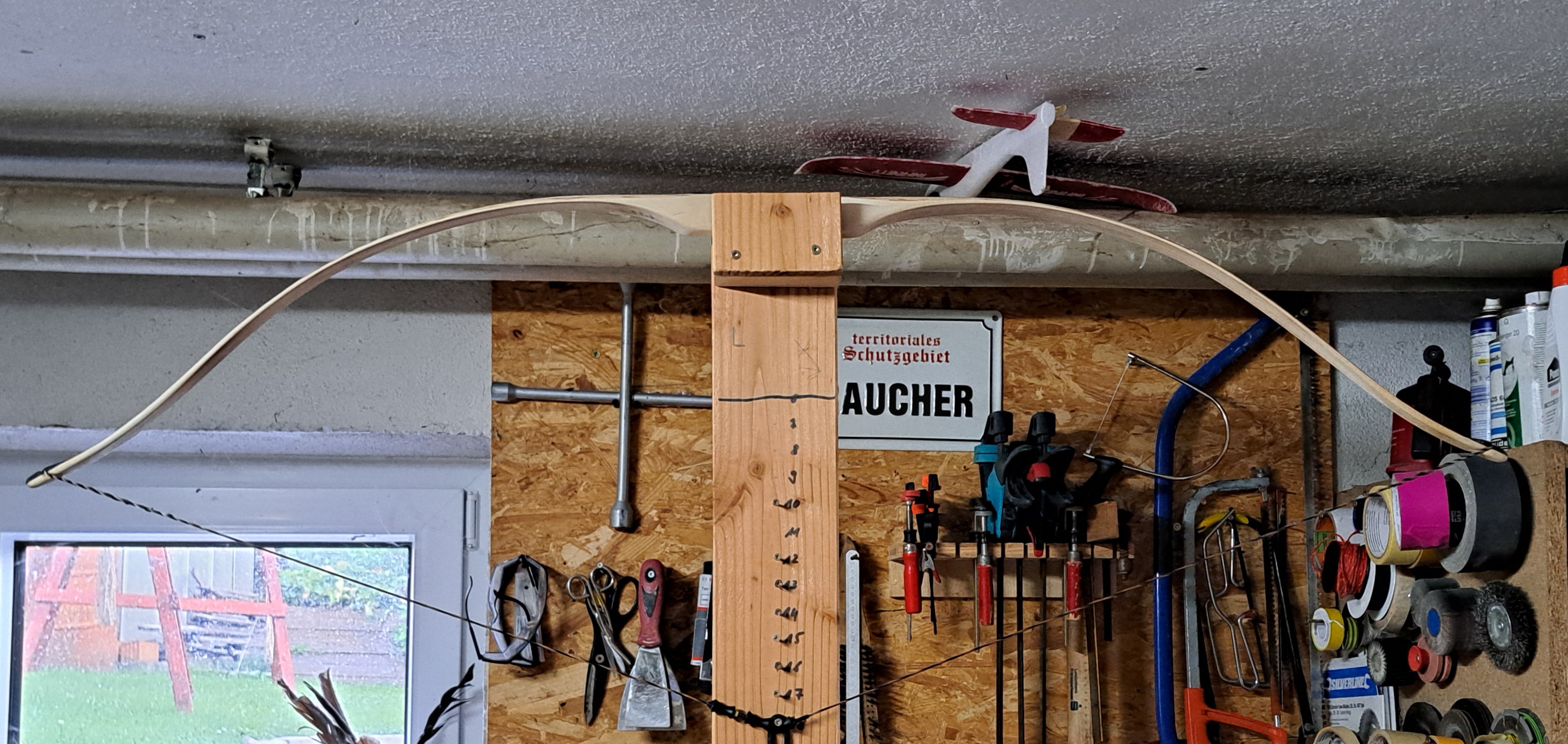 Danke für den Hinweis. Hier noch das Bild vom angespannten Bogen. hat schon ein bisschen set. werde ihn aber noch wärmebehandeln.
