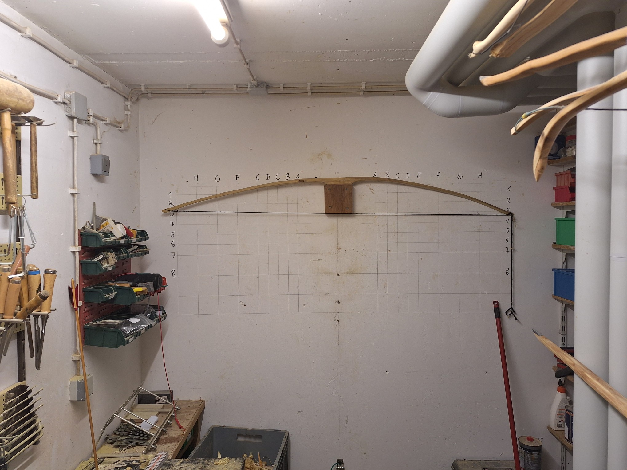 Hier die Bilder vom ersten mal aufspannen: Rechter WA bei A ist der deflexe Bereich und mittig macht er reflexe und deflex Kurven. Am linken WA hatte ich den Spaß mit 2 Astlöchern
