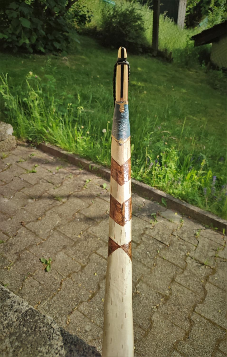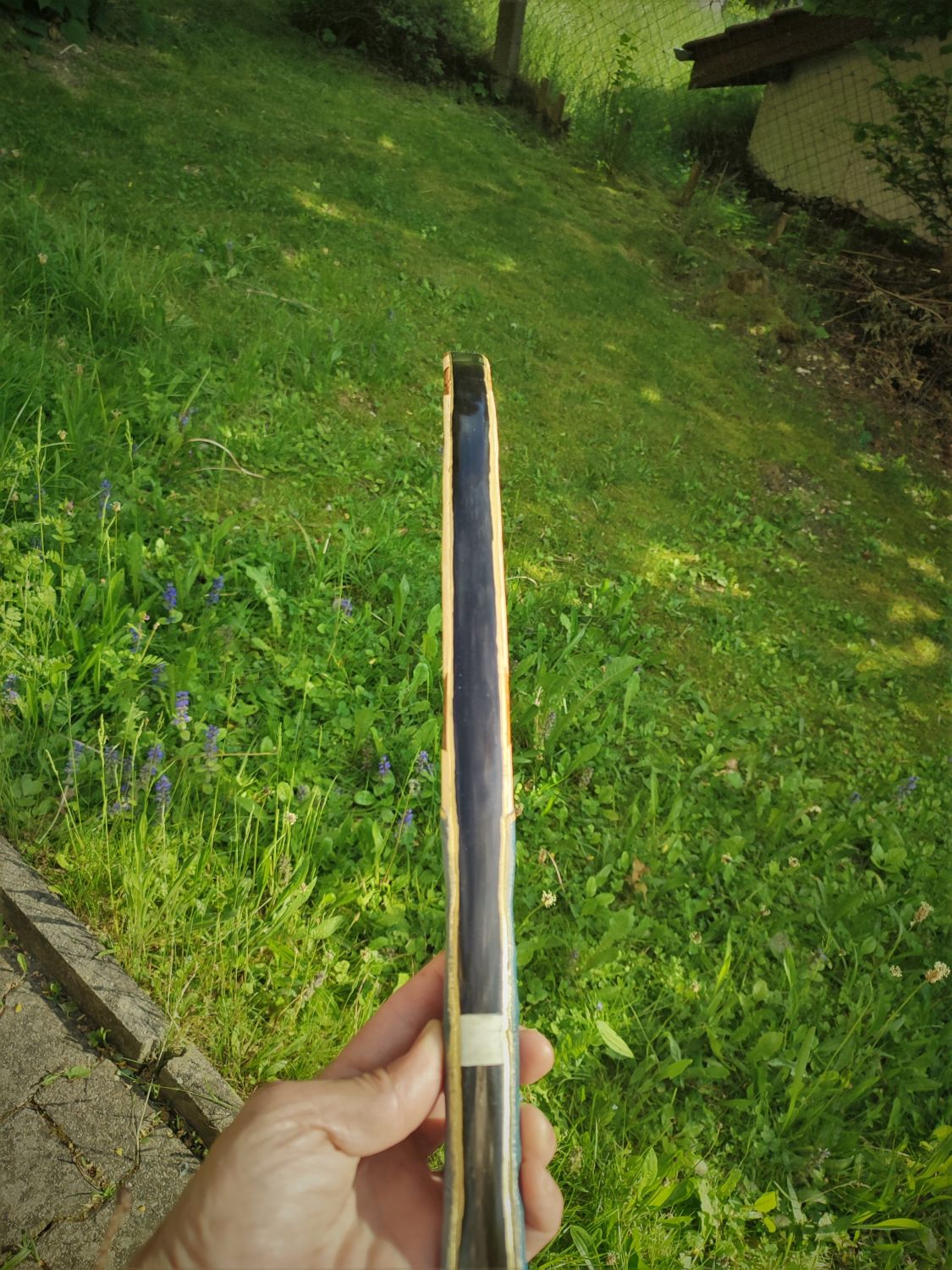 hier stelle ich euch ein Osmanischer Reiterbogen vor, der von der aus der 4er Serie stammt, die ich vor ca. 3,5 Jahren angefangen habe. Der lag jetzt 3 Jahre im Keller, da beim öffnen des Bogens das Horn am Kasanauge abgeplatzt ist(war wohl ein Fehler im Horn und oder die Verklebung war nicht stimmig) Ich hatte 3 Jahre lang keinen Lust den Bogen zu reparieren und jetzt hat es mich wieder gepackt, den Bogen fertig zu stellen. So habe ich das alte Horn vom Bogen entfernt und ein neues Horn eingepasst und eingeklebt. Das hat alles soweit gut gepasst und beim einschießen nach 20 Pfeilen hat das Horn im Saal versagt und ist im Horn selbst delaminiert.... ::) war etwas frustrierend... Aber ich habe mich entschieden ihn noch einen Hornstreifen zu gönnen. Also alles auf Anfang ...Horn runter, Horn wieder drauf , tillern , zum Einschießen und siehe da er hält ;D Das besondere an dem Bogen, sind die Siyahs aus gewachsenem Hasel. ;)