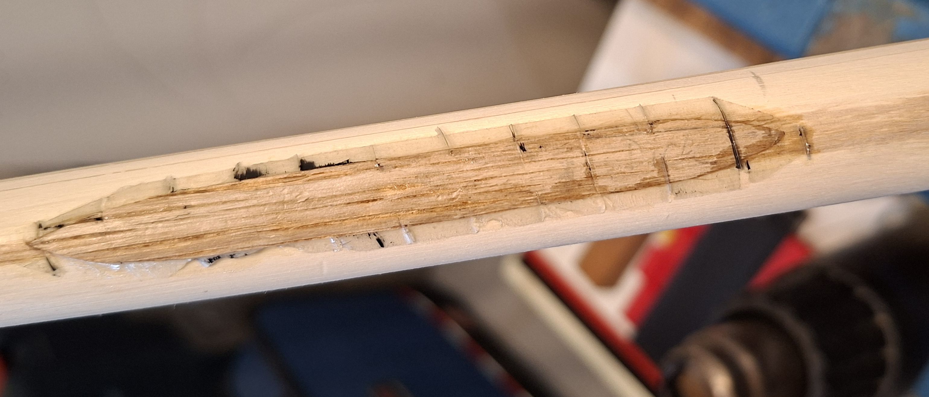 Der Tiller bei 22" Auszug gefällt mir ganz gut. Ich will noch die leichte Schwachstelle rechts, ca 30 cm vor WA-Ende, etwas entlasten. Vereinzelte Bereiche werden noch etwas geschliffen und dann gehe ich langsam auf Vollauszug - mal sehen wann der Bauch kollabiert