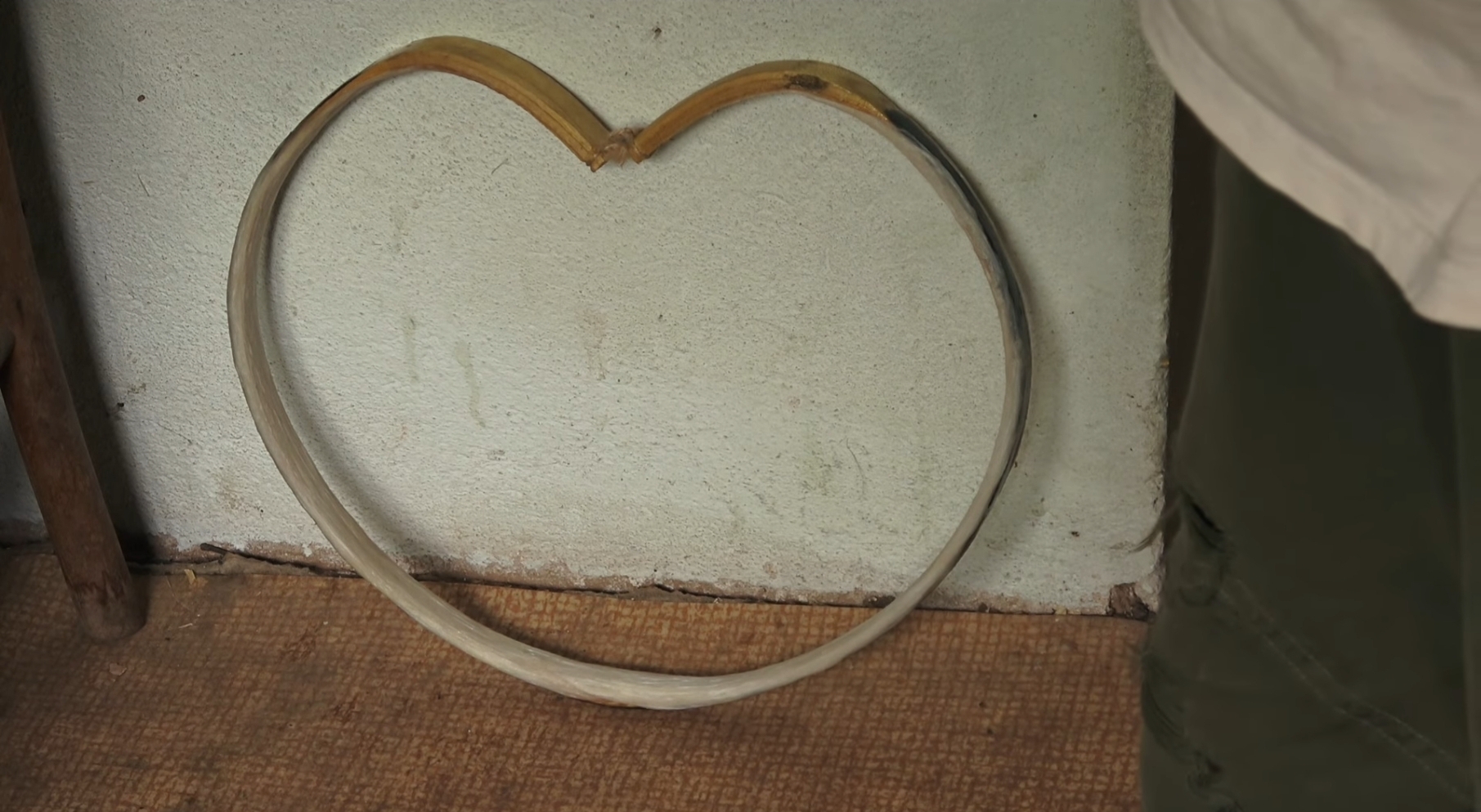 Heute hab ich mich mal an den Dickentaper am Siyah gemacht. Anschließend hab ich den Rahmen mal zum kontrollieren der Asymmetrie in die Form gespannt. Zum Teil kommt das wie gedacht von dem Siyah-Abschnitt zwischen der starken Krümmung und dem Spleiß, die starke Krümmung ist aber ebenfalls unterschiedlich. Würde mich jetzt aber nicht so stören. Was mich aber stört ist, dass einer der Siyahs scheinbar auch schräg eingespleißt ist... ich glaub den muss ich entweder nochmal rausschneiden und neu kleben, oder gleich neue Siyahs machen. Mit denen bin ich nämlich sowieso nicht ganz glücklich weil sie so Schwarz verfärbt sind. Das kommt von einem Metallstreifen den ich beim biegen beigelegt hab. Der Streifen war rostig...