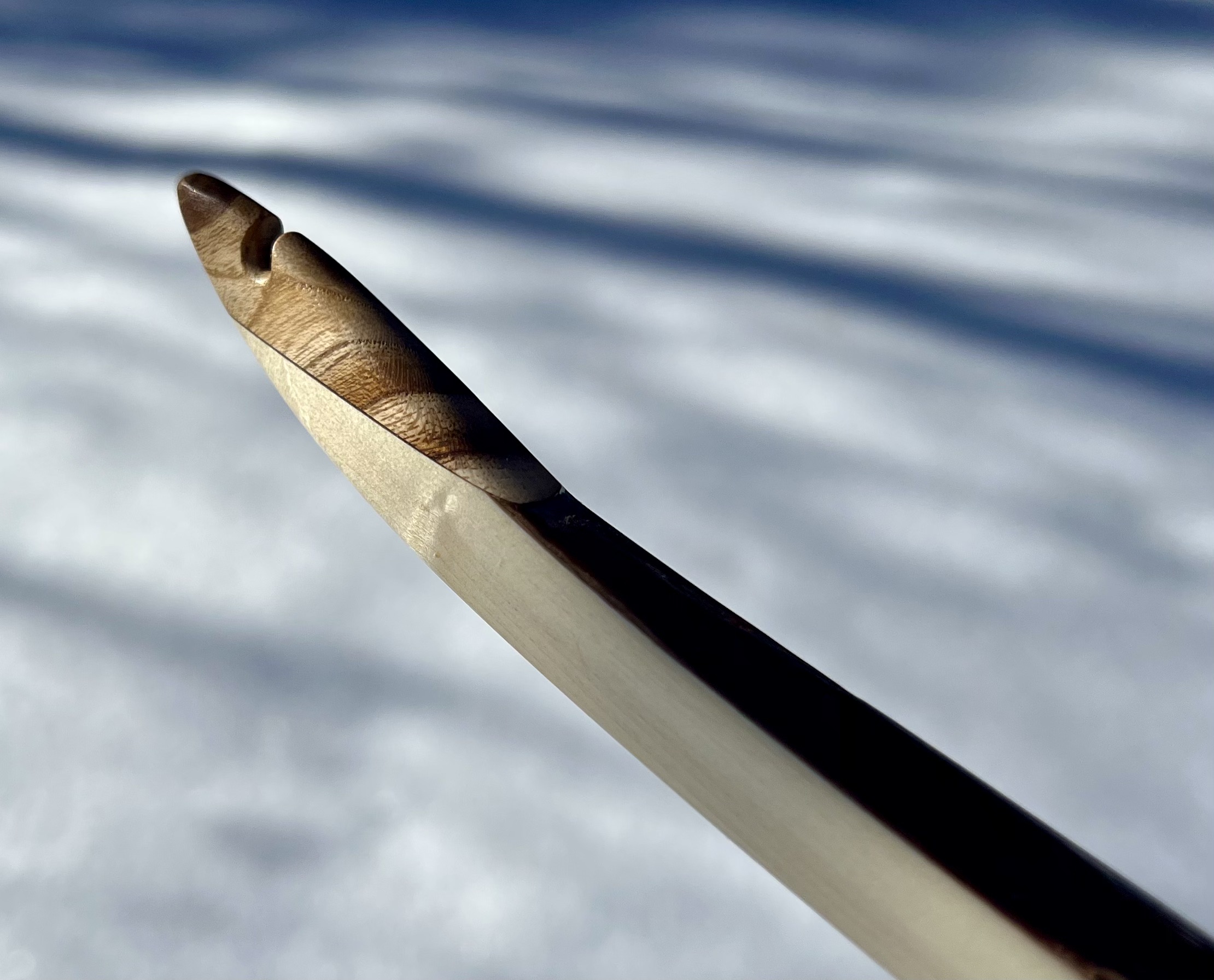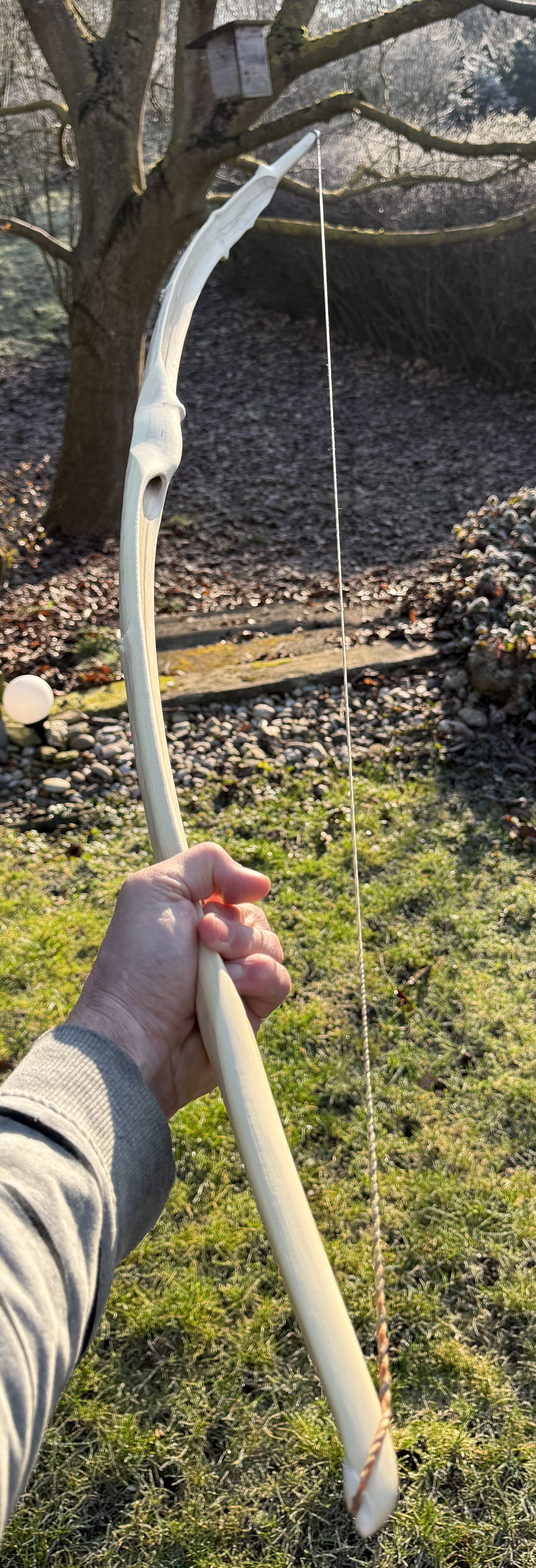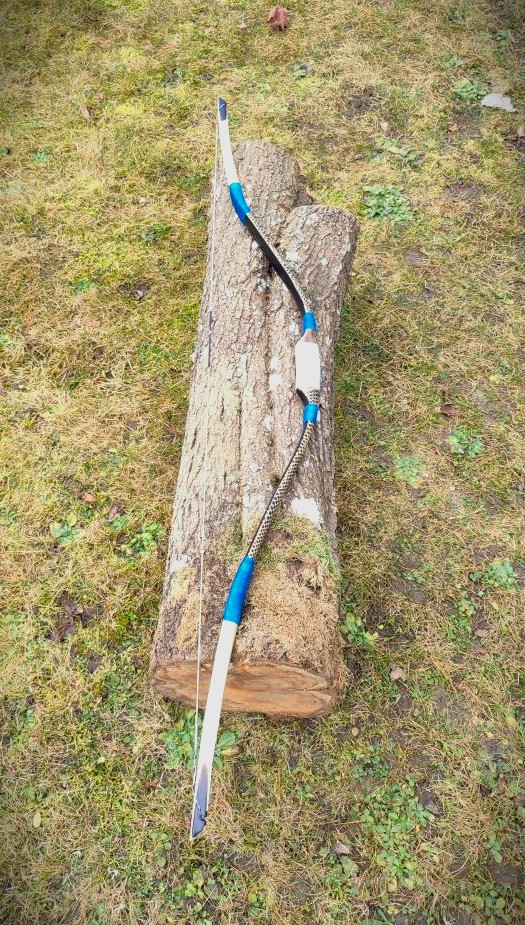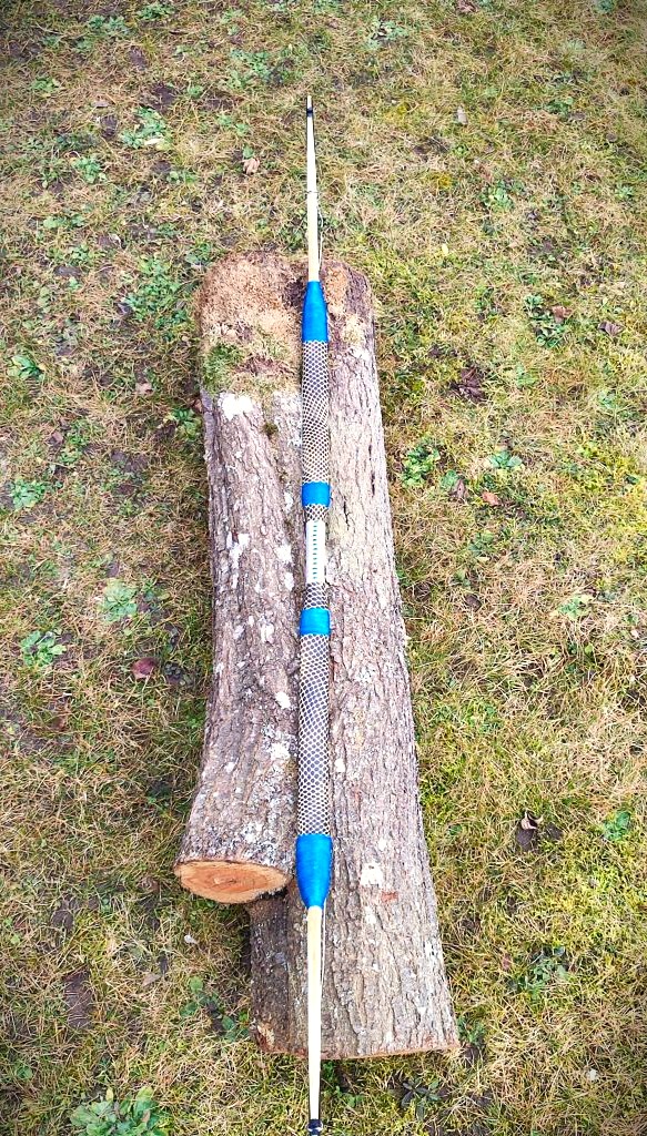 Der blanke Bogen wog 220g, also ohne Leder, Fell und Sehne.
