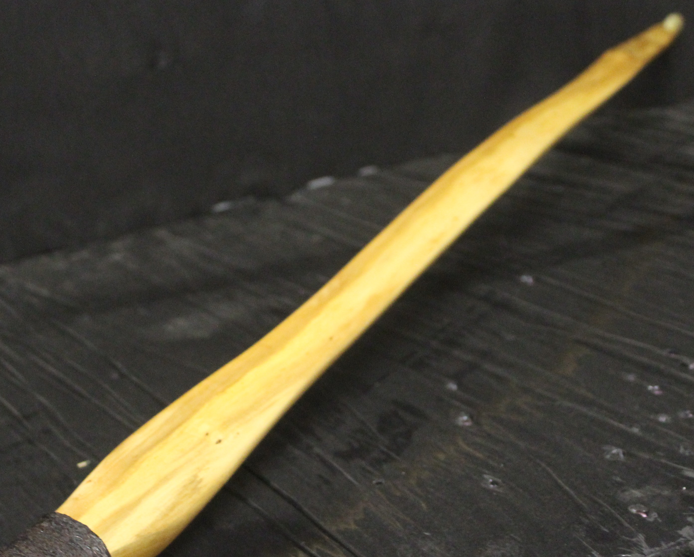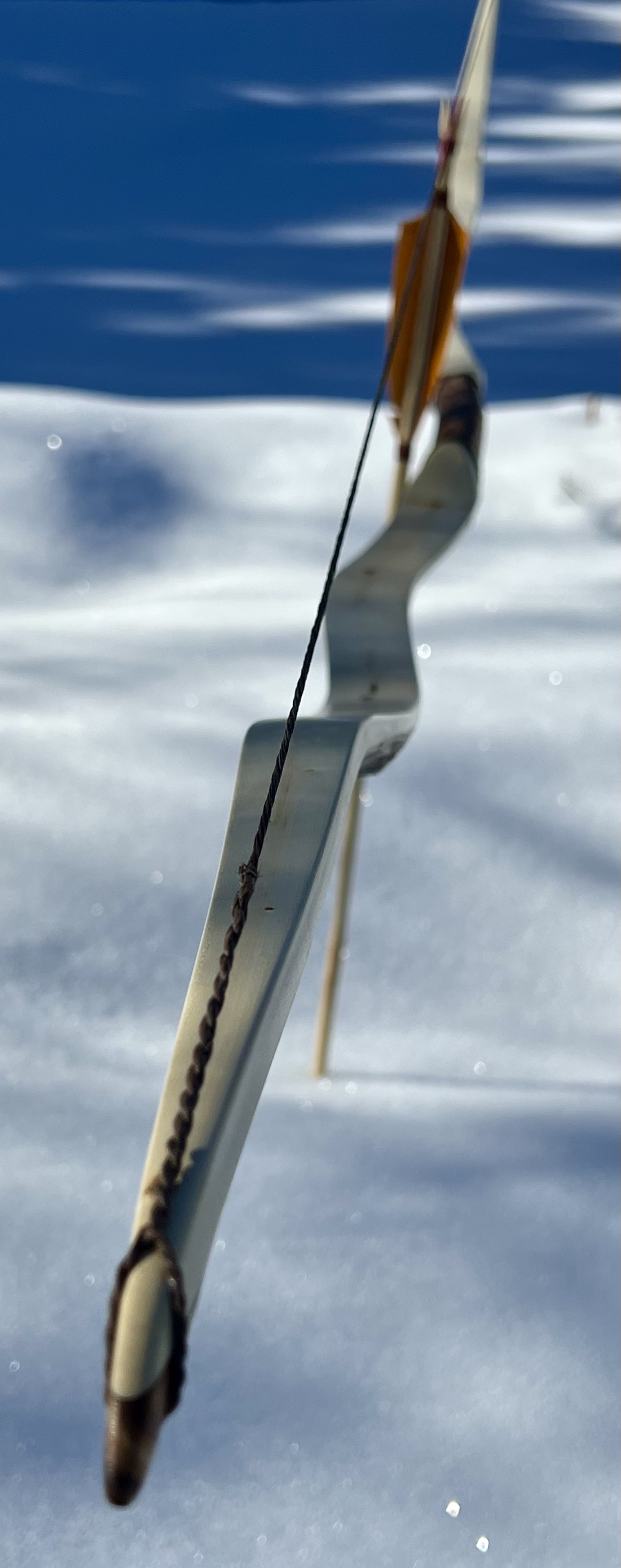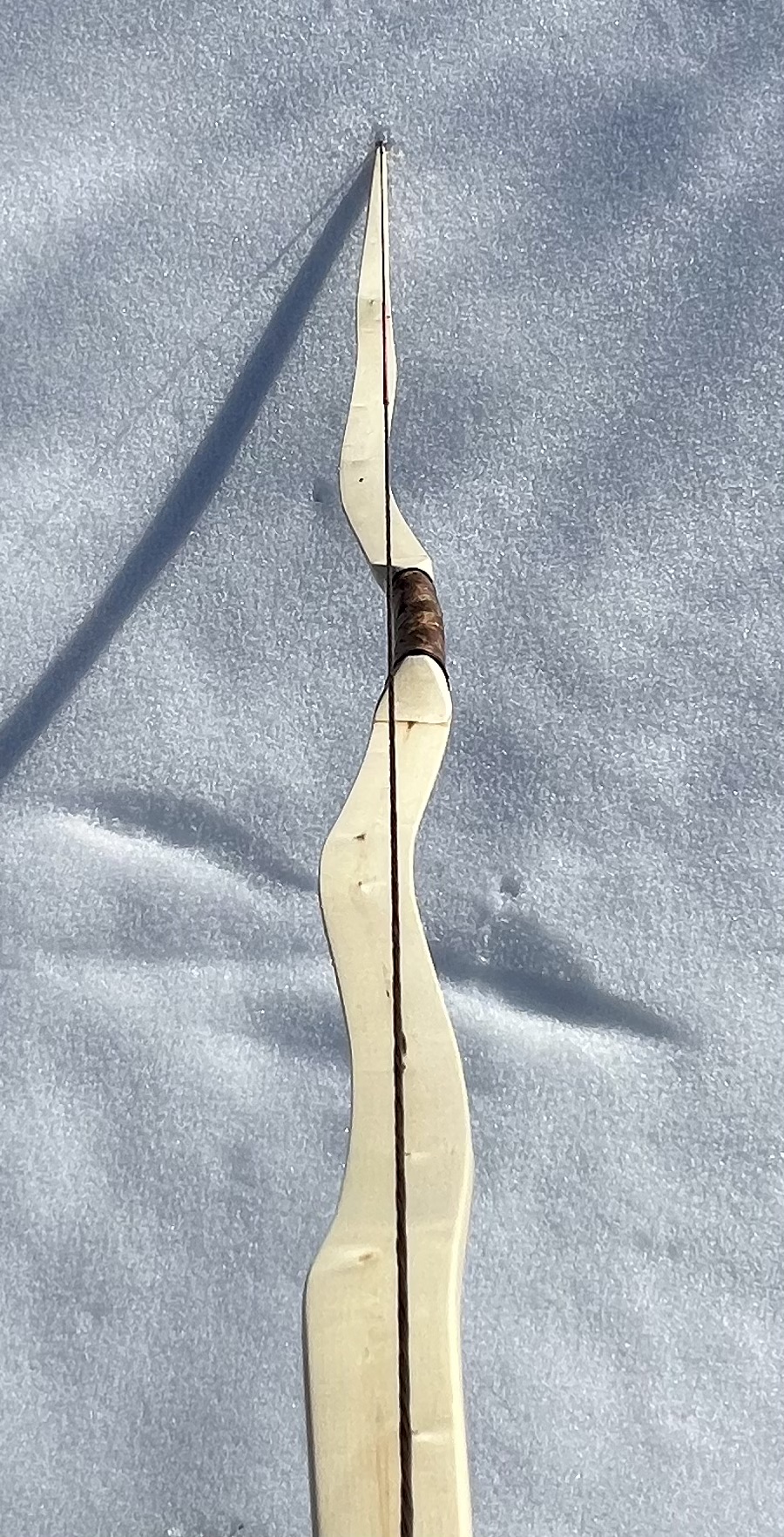 Der blanke Bogen wog 220g, also ohne Leder, Fell und Sehne.