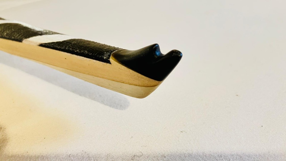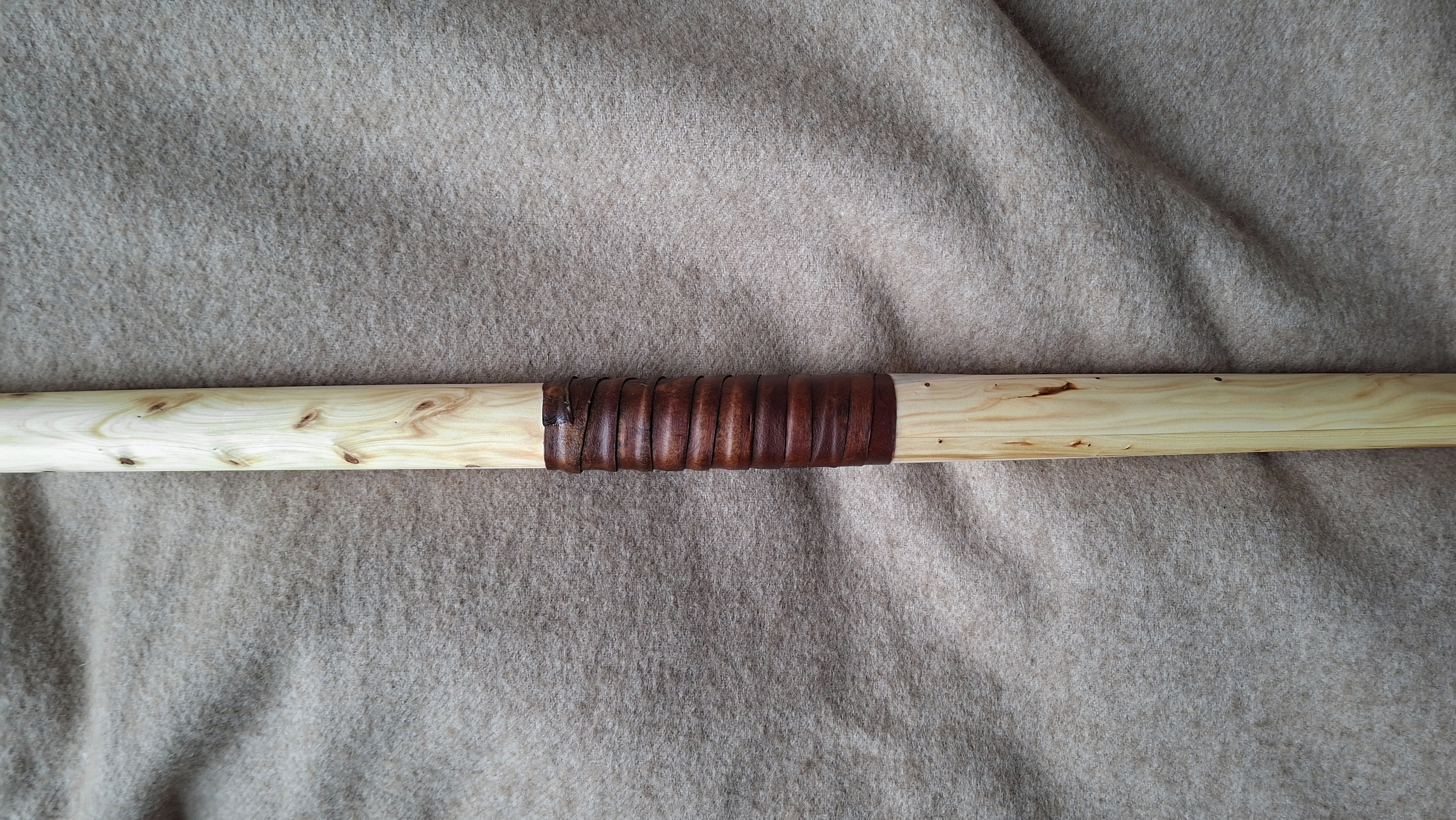 Griff: mit Leder unterfüttert und mit 2 Lederbändern umwickelt