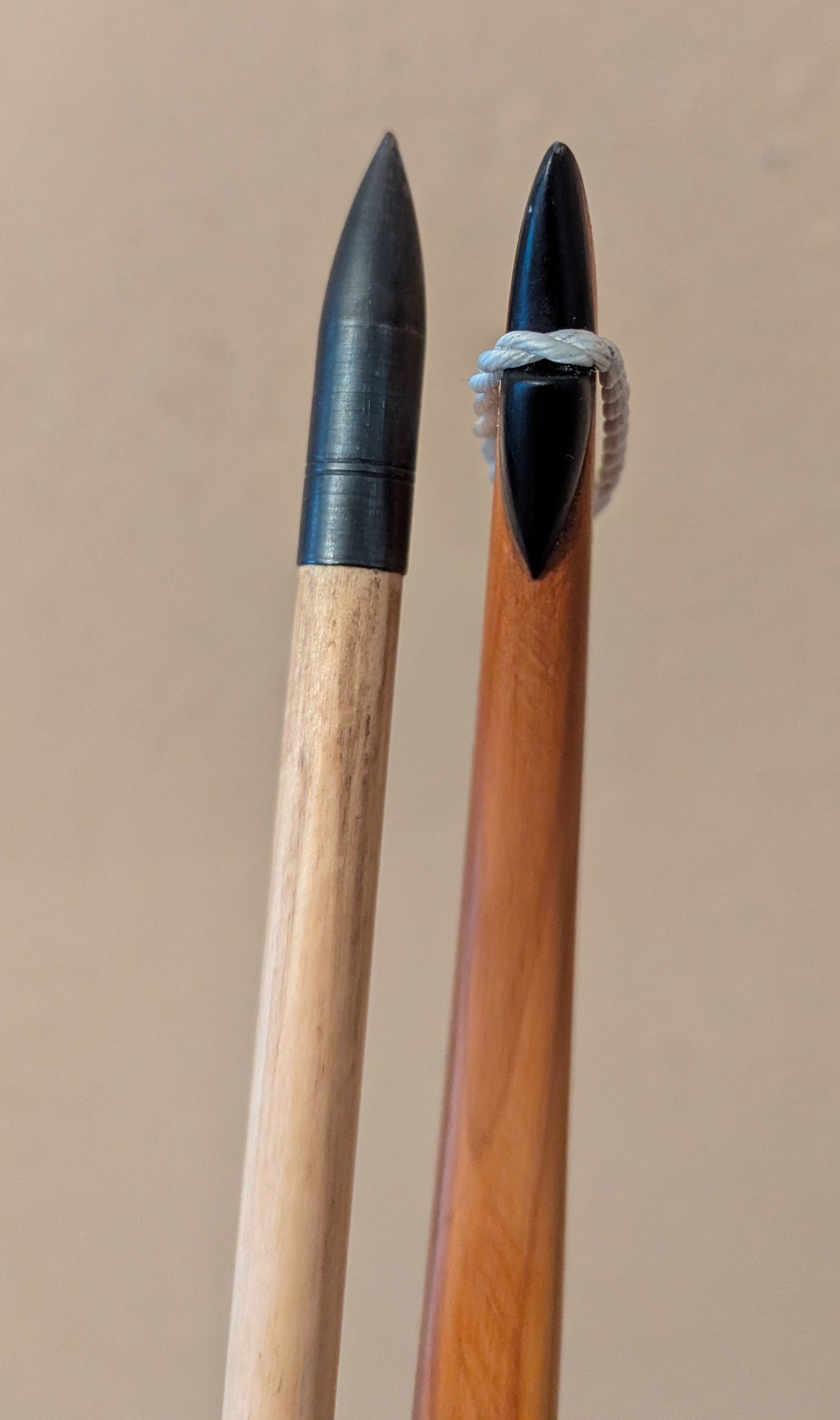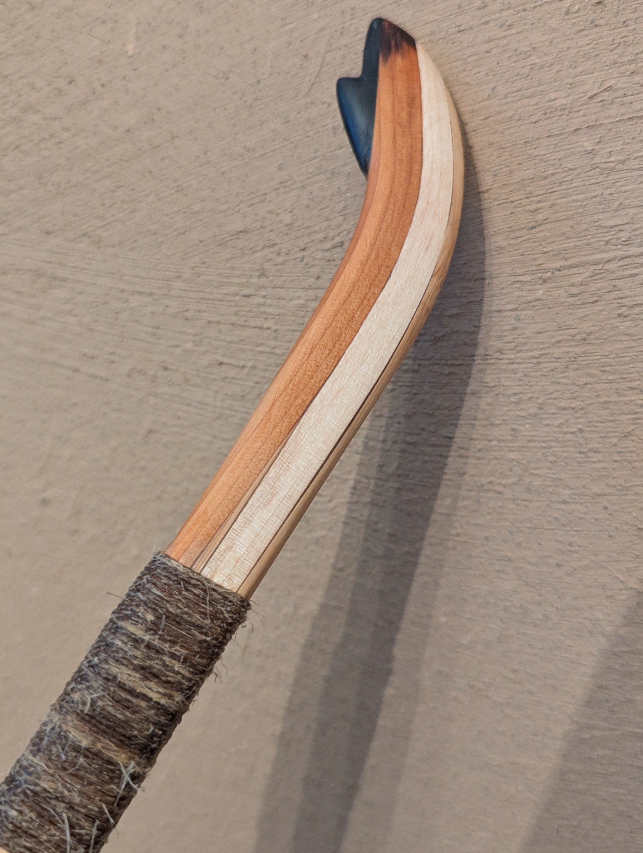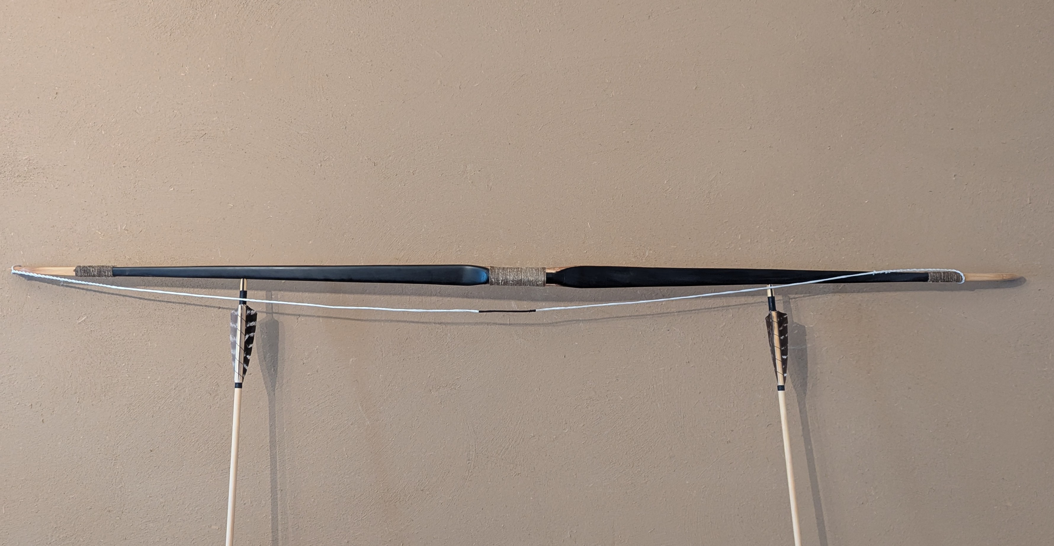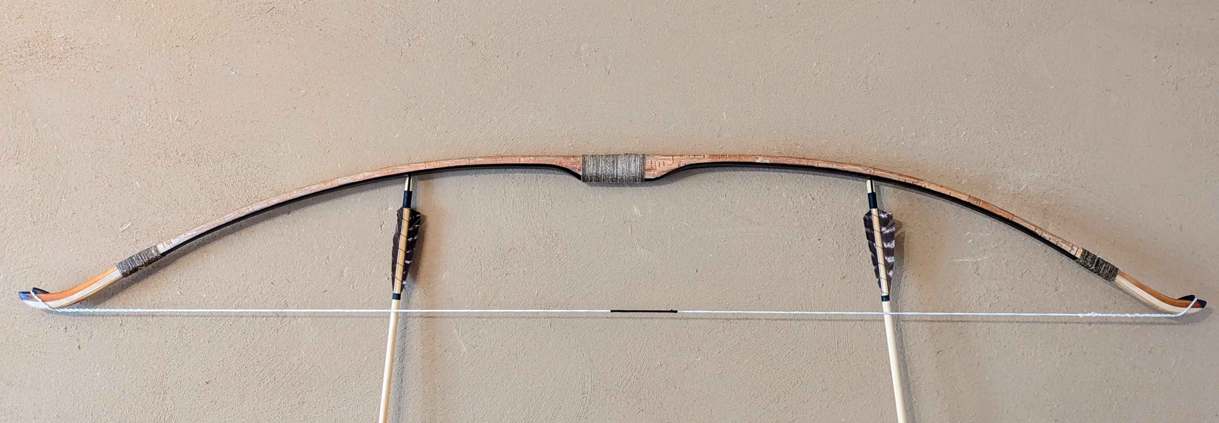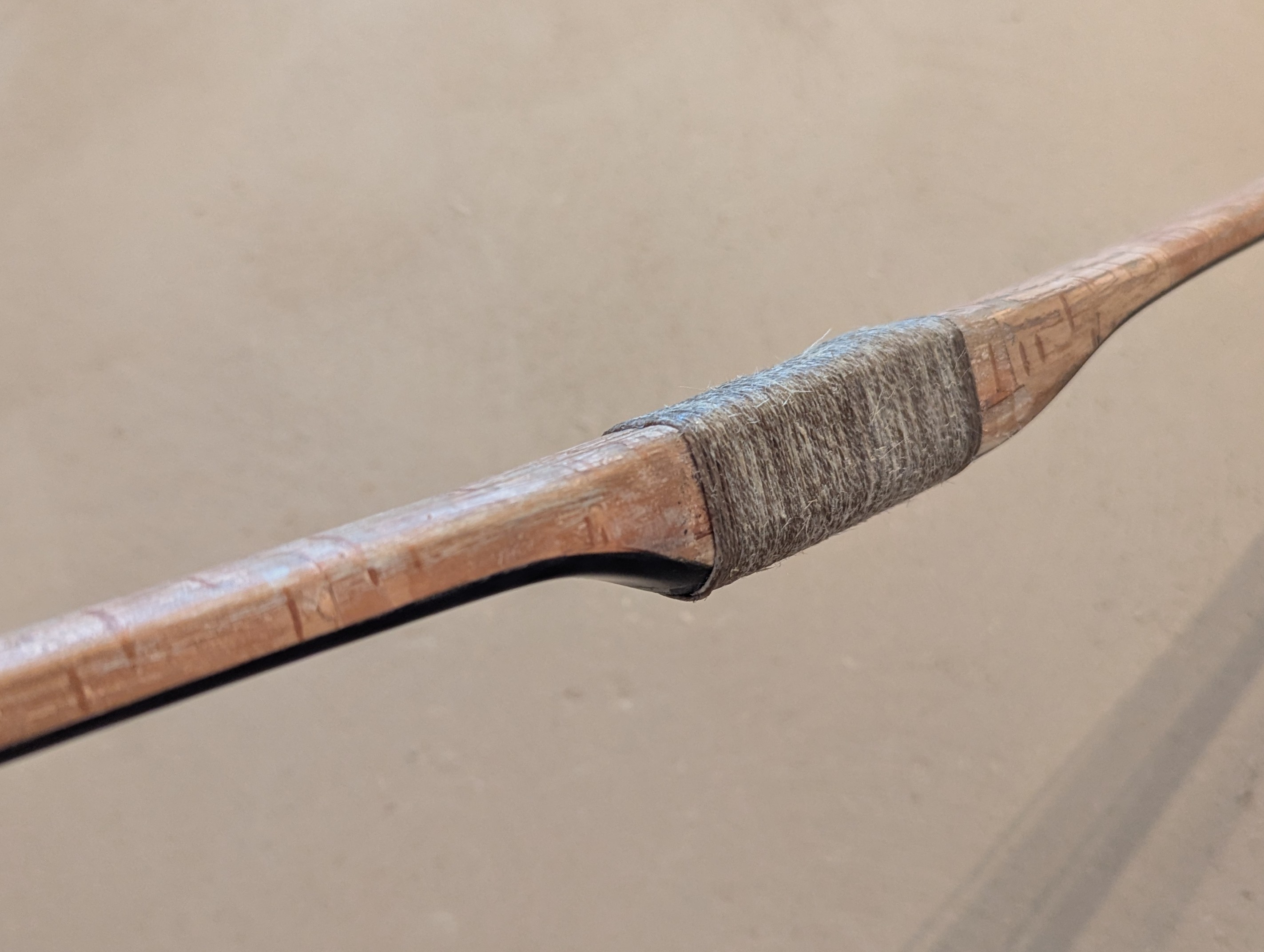 Mit den Wickelungen am Spleiß hab ich verschiedene Sachen probiert. Zuerst hatte ich schwarzes dünnes Garn drum gehabt. Das hat meiner Meinung überhaupt nicht zur restlichen Optik gepasst. Am Griff hab ich auch verschiedene Sachen ausprobiert. Von Kompletten Griffleder bis Teils Wickelung Teils Leder. Irgendwie sah das Leder aber immer wie ein Fremdkörper am Bogen aus. Grüße, Daniel
