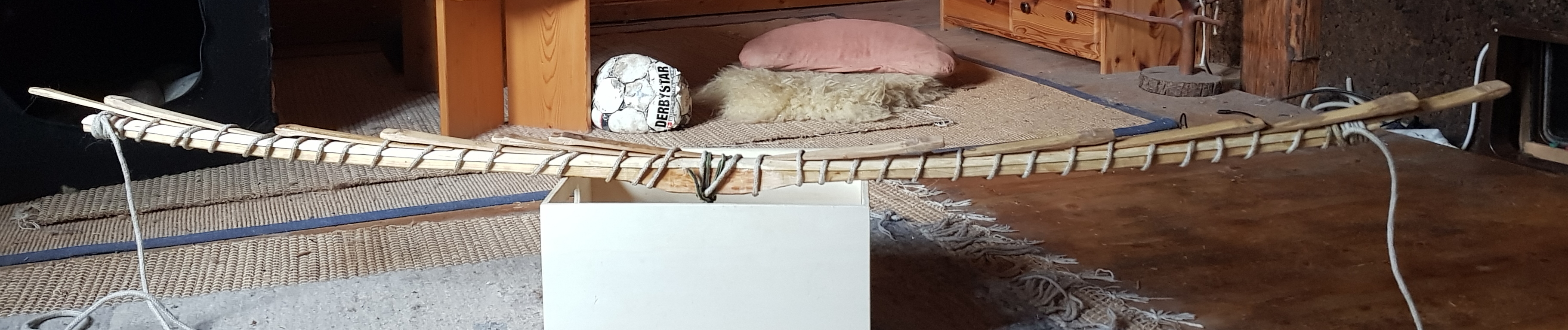 Zwischen jedem Leimauftrag das Holz über dem geschlossenen Holzherd erwärmt..