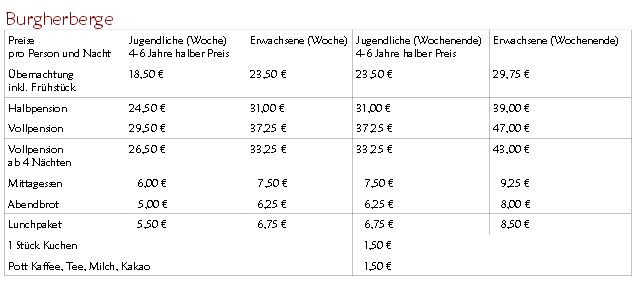 Preise 2013 (es wird in 2014 eine Preiserhöhung gegeben, die sich aber vorallem auf das Essen bezieht...)