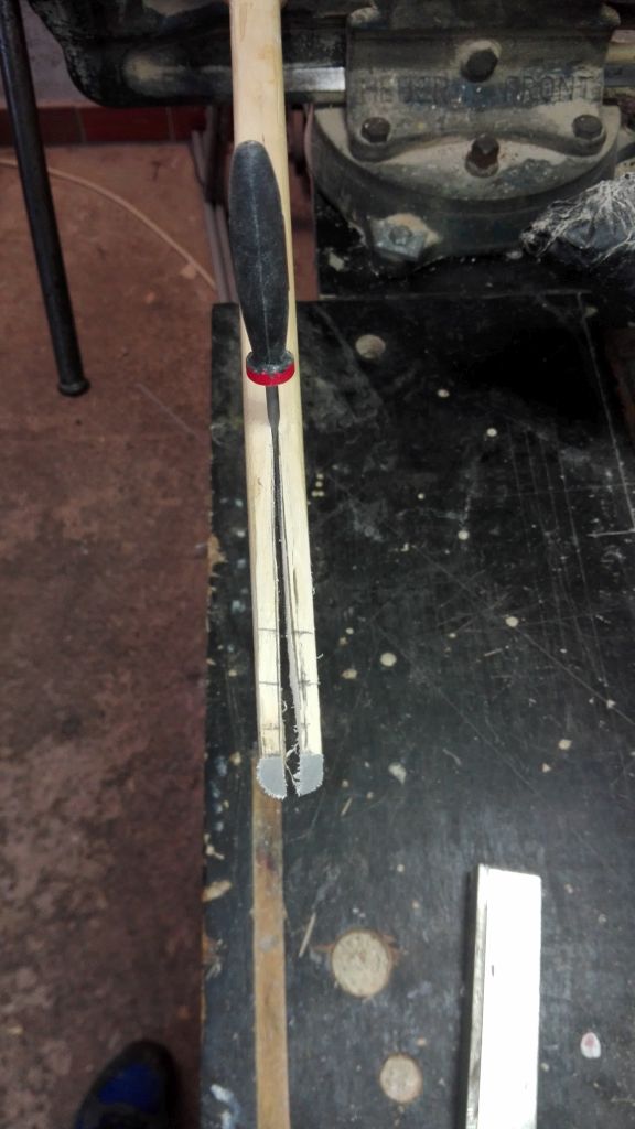 So mit dem Hybriden ging es auch weiter. Ich habe ihn eingebogen und auf gespannt...man war das ein Akt. Der hatte so einen Reflex, das es kein Zuckerschlecken war den aufzuspannen. Ohne Spannbrett keine Chance... Der Kund, der ihn bekommt , muss ihn mit einer Spannschnur aufspannen. Richten musste ich ihn so gut wie gar nicht. Lediglich leichte Korrekturen an den Stärke Verhältnisse der Wurfarme musste ich durchführen. Er hat jetzt 42#@28'' bei einer Länge von 166cm NTN. Er wird noch auf 160cm gekürzt und wird dann wie geplant 46#@28'' haben. Ich habe ihn auch schon eingeschossen...