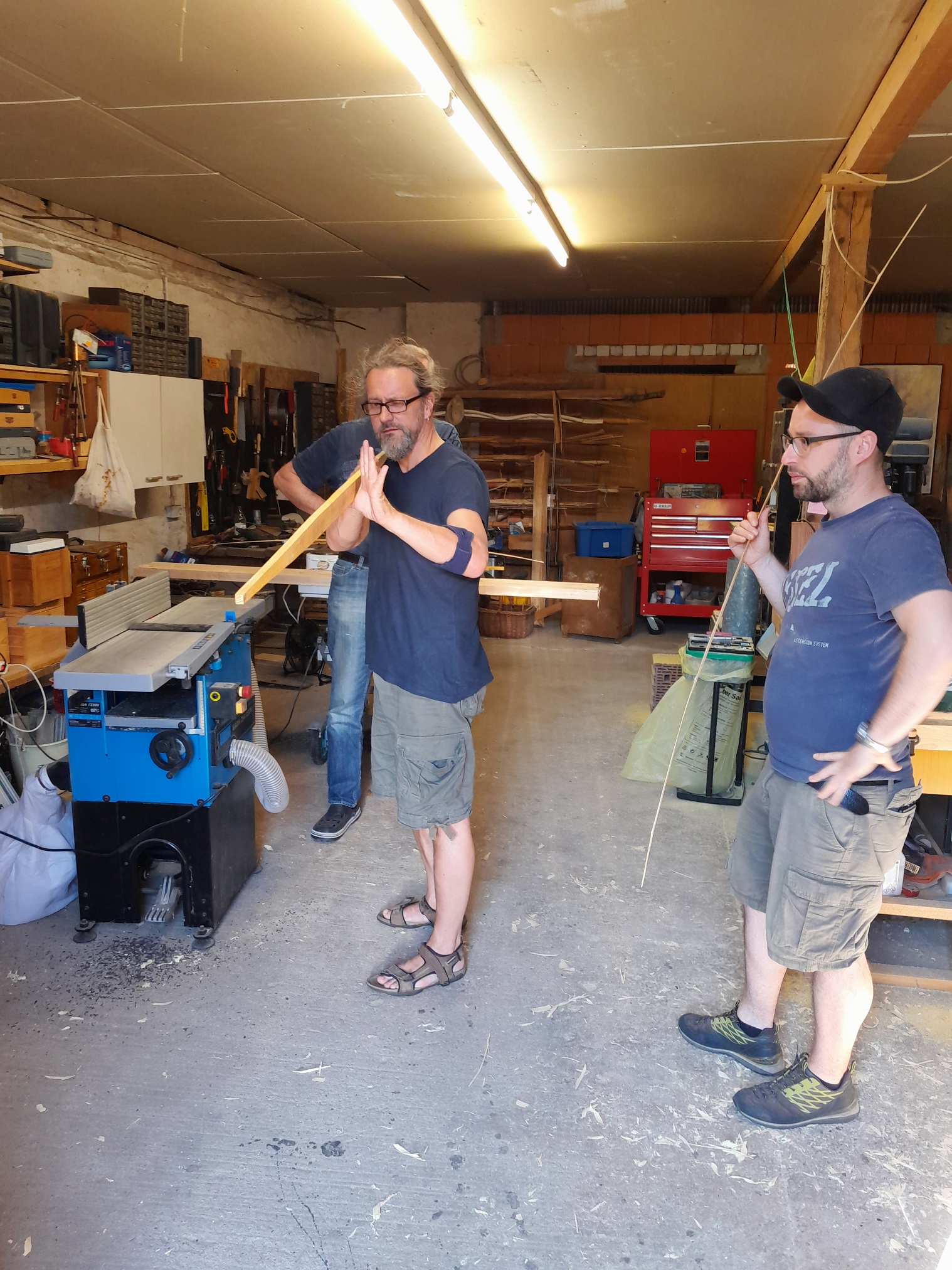 Hier werden die Bögen von unserem Tagesgast inspiziert