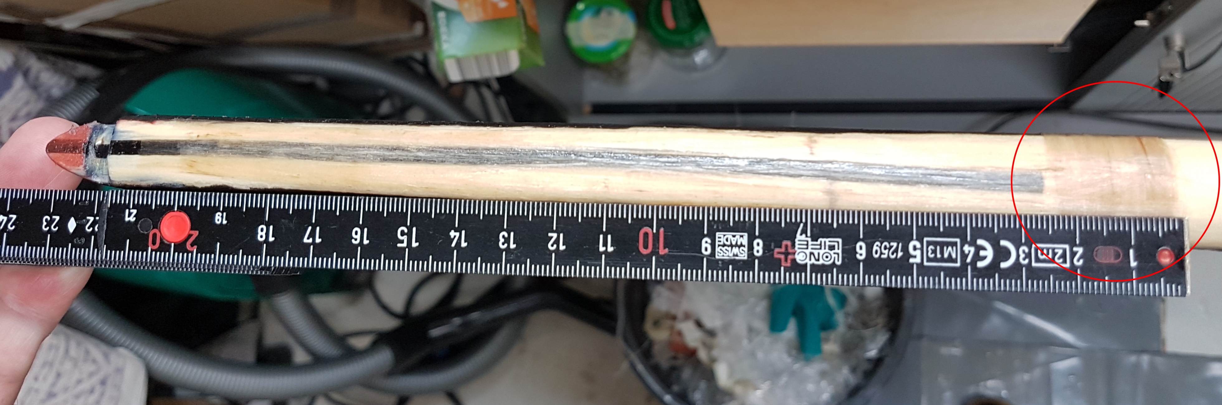 Das Zuggewicht ist jetzt deutlich höher, aktuell 63#@22". Bei 23" habe ich für heute aufgehört, da es etwas geknistert hat und ich das Teil erstmal genau auf sichtbare Fehler untersuchen will.