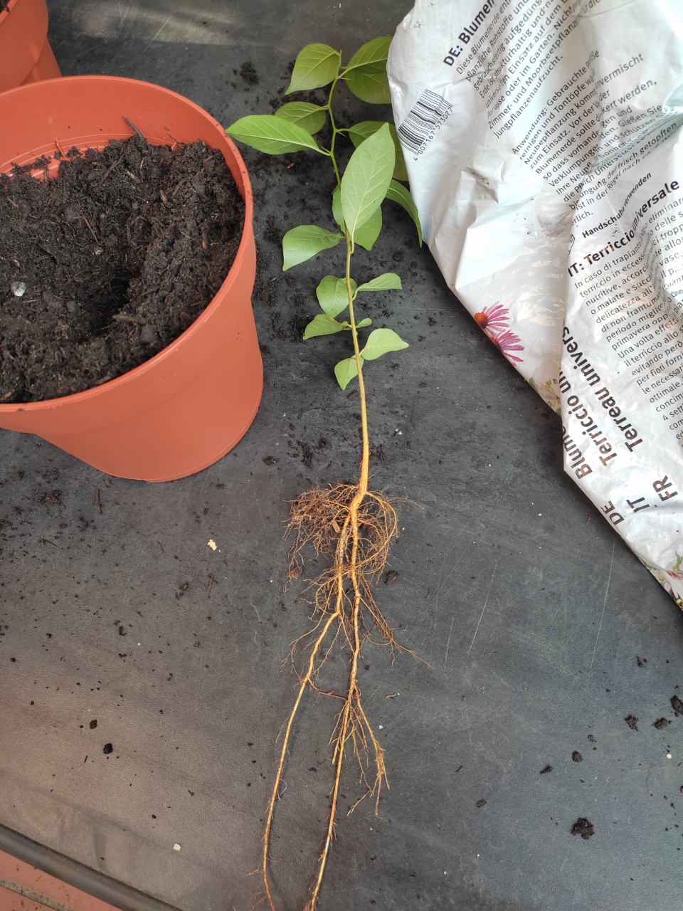 Aktuell einen von diesem Jahr umgetopft, die Wurzeln sind erstaunlich lang