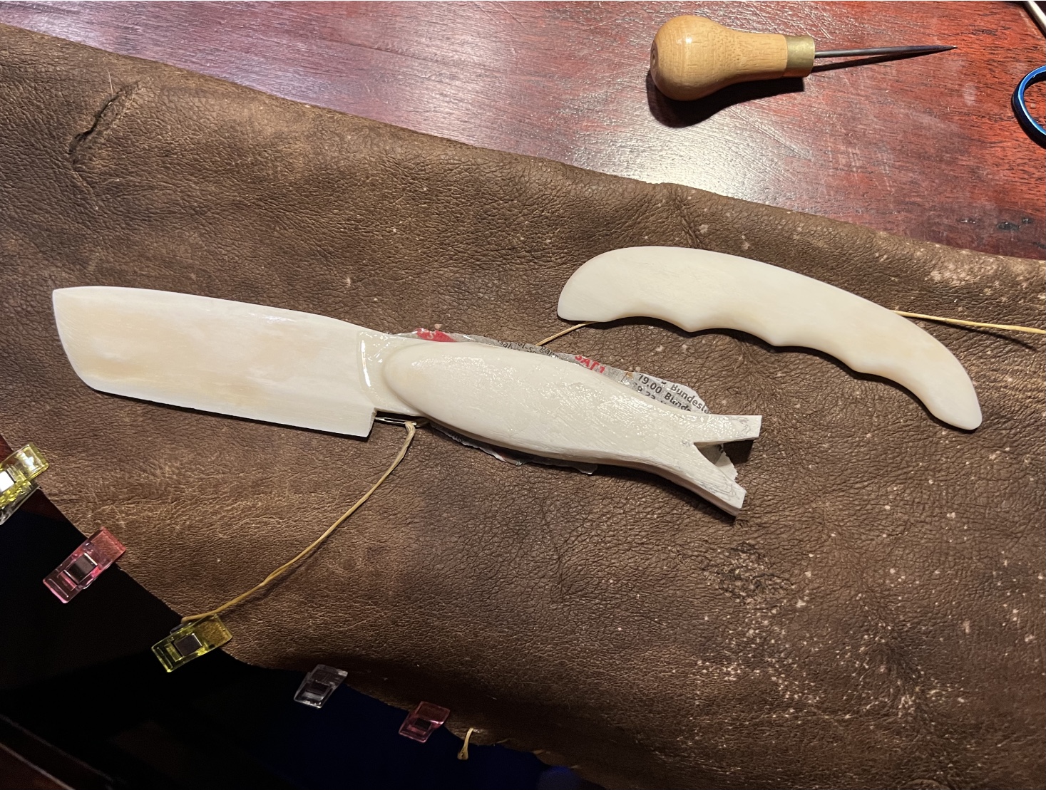 Heute noch ein altes vergammeltes Hirschleder in Form gebracht und Knochenreste veredelt. Der Wacholder bekommt einen Bogenköcher.