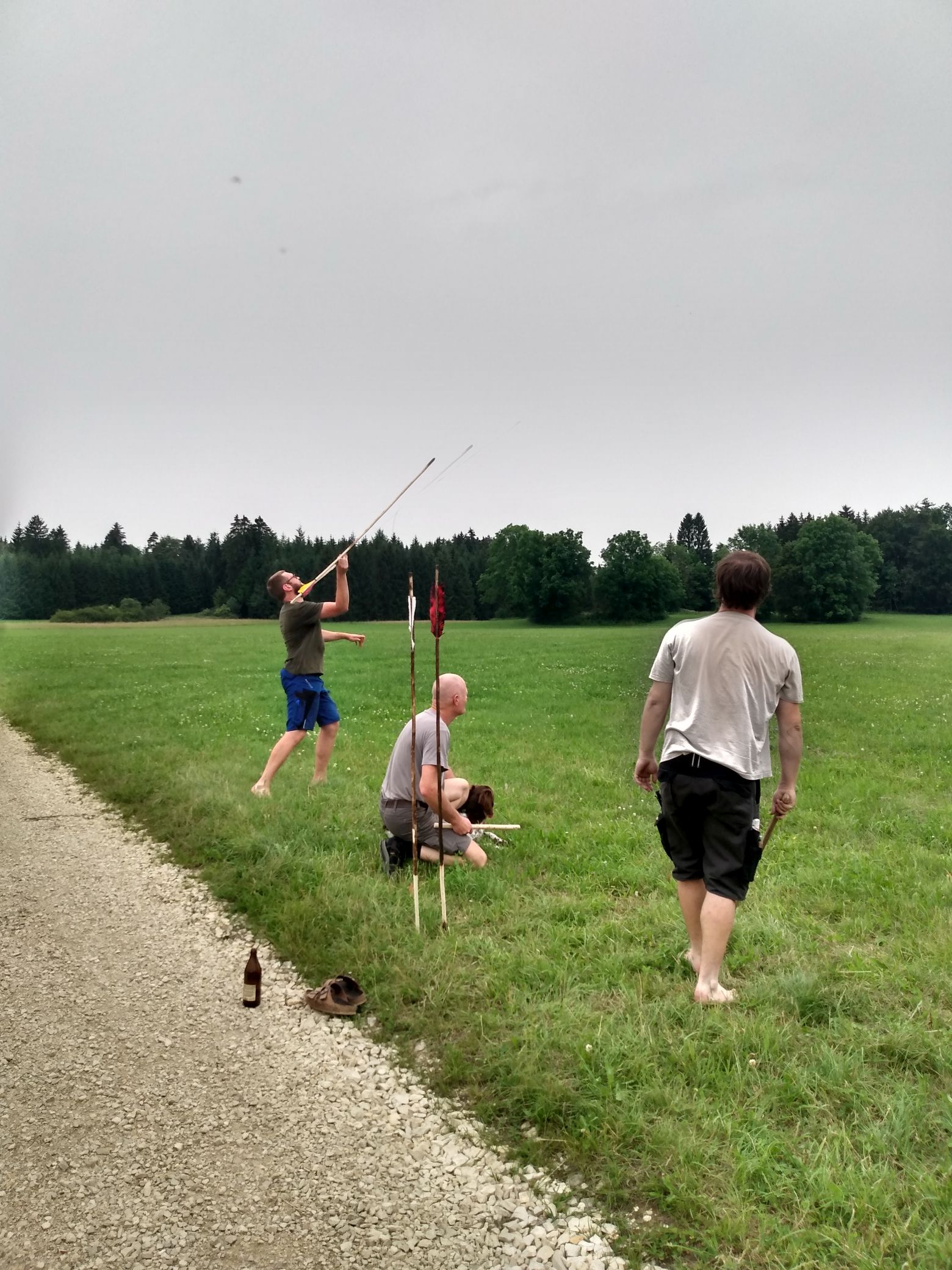 Wir haben wirklich alles gegeben, aber die hohe Luftfeuchtigkeit und der Gegenwind haben Rekordweiten verhindert, wir mussten uns mit 280m Holzkompositbogen, 270m Primbow und 245m englischer Langbogen zufrieden geben