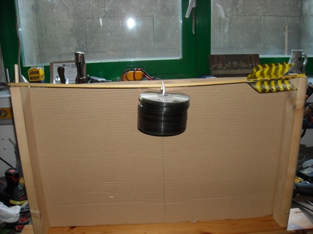 Ablesen tut man nicht, na ja natürlich schon, sosnt hätte es ja keinen Sinn. Ich messe meinen Referenzpfeil, oder auch zwei oder drei und mache mir dann am Karton eine Markierung genau auf Höhe der obersten CD.
