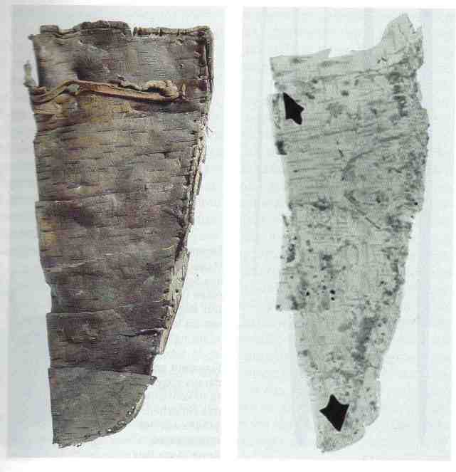 Der Köcher ist ein paar Meter weiter bereits 2003 von der gleichen Stelle. Auf dem Röntgenfoto sieht man als schwarze Umrisse sehr schön noch zwei Silex-Spitzen drin.