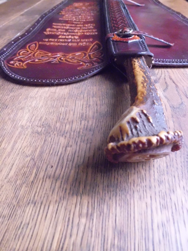 -Wenn das Leder kurz vorm trocknen ist kann die Umrandung entlang der eingeschnittenen Linien mit den Anschräger Werkzeugen (punzier Eisen) bearbeitet werden die Unebenheiten kann man dann noch mit einem glattem Holz Spatel oder Bein Spatel bearbeiten.