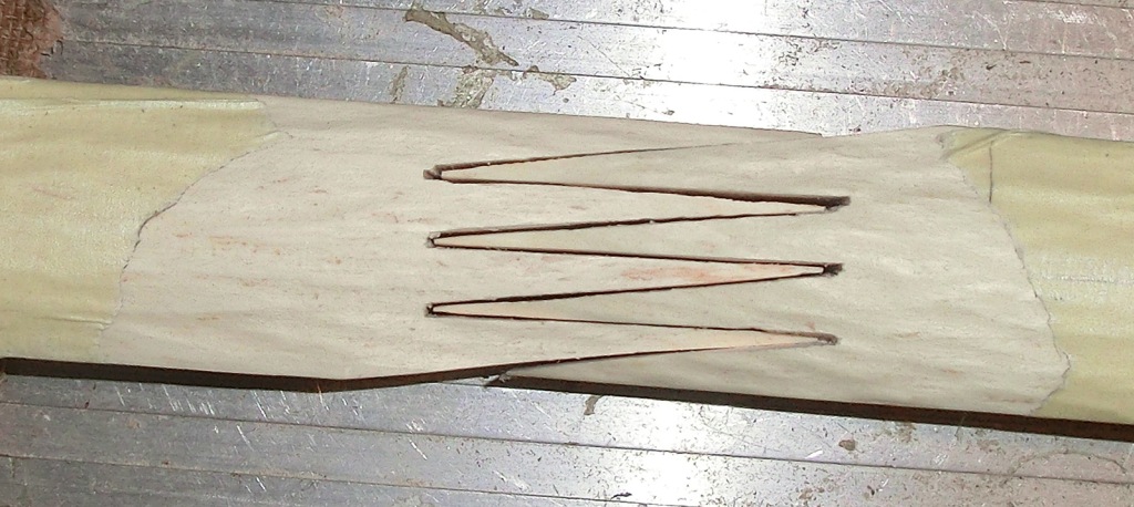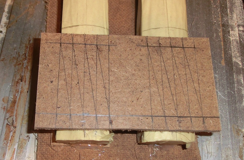 Dann wurde über der Spleißstelle ein weiteres Rum-Fort-Brett geklebt und der Spleiss angezeichnet,