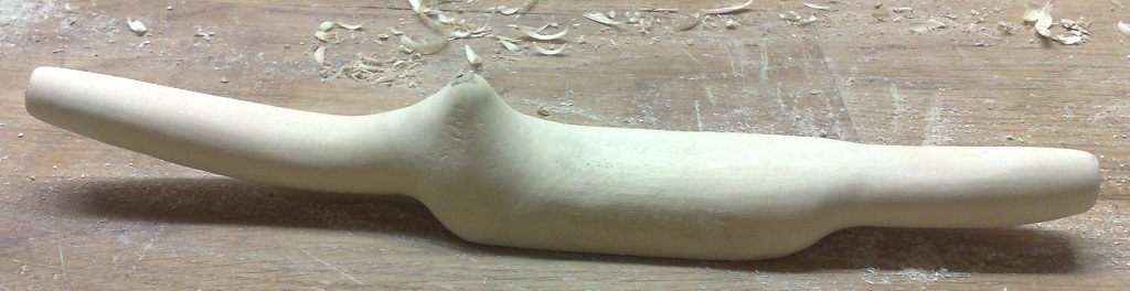 - Mann, was für ne Schufterei - ich bin ein wenig neidisch auf die Bandsägenbesitzer. Nachdem das Holz von Tag zu Tag weniger Wasser verliert (Vorgestern 9,5 g bei 1421 g, Gestern 8,5 g bei 1403,5) war es höchste Zeit die Form rauszuarbeiten. Es raspelt sich wunderbar.