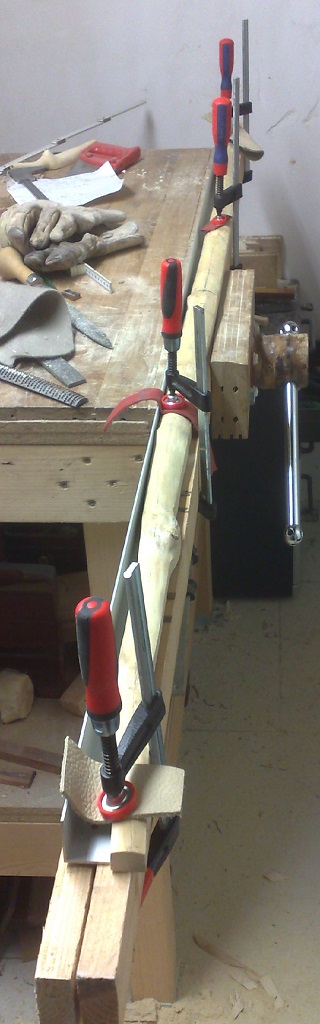 Und dann habe ich noch den Griff soweit vorbereitet (kleines Ziehmesser, kleine feine Halbrundraspel, grosse Flachraspel, kleiner runder Stechbeitel, Schnitzmesser und Ziehklinge).