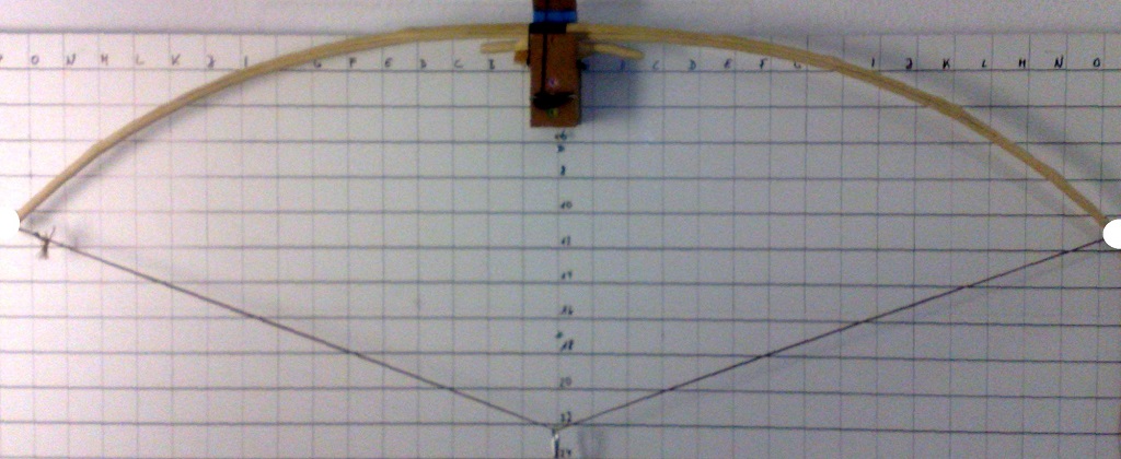 ungespannt auf Standhöhe ca. 6" und ausgezogen bis 22" (iss leider etwas unscharf geworden - sorry) Ich denke, dass rechts aussen noch deutlich zu wenig biegt.