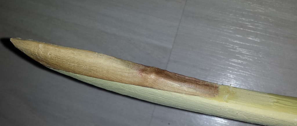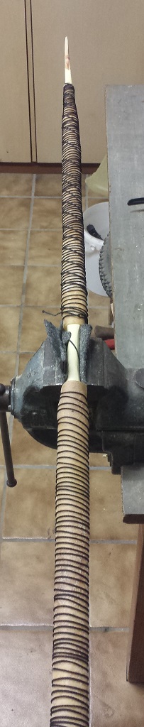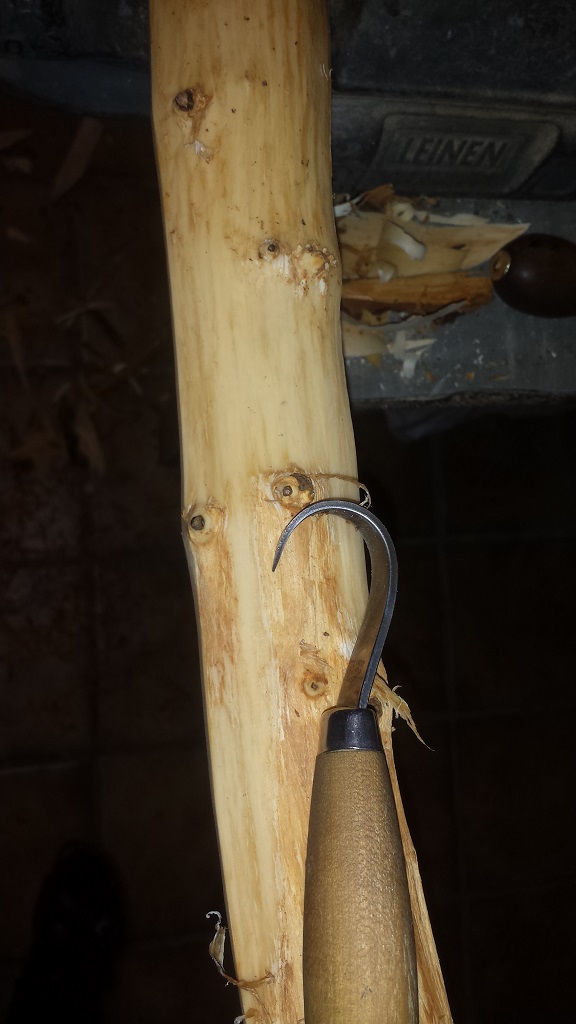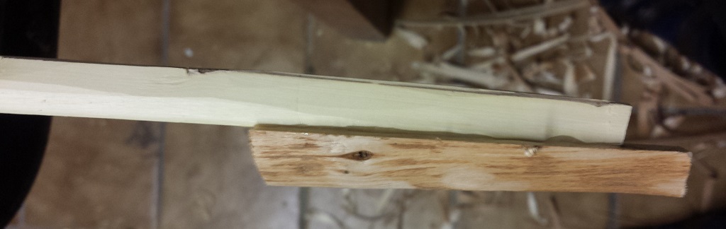 Die Rohhaut noch etwas dünner schleifen. Dann werden Nockkerben angebracht und dann gehts ans aufspannen tillern etc...