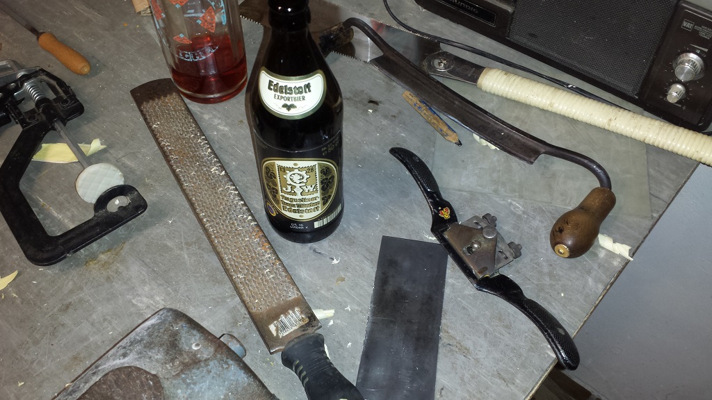 Da der Rohling schon ziemlich auf Bogenmaß gebracht worden ist konnte er dort gut trocknen und hat jetzt noch die letzten Tage in meinem Zimmer verbracht in welchem der tägliche Wasserverlust zwischen 2 und 3 Gramm betrug. Schaut also schon mal gut aus