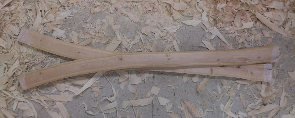 Hallo AlexM, also das verhält sich so: Die Billets habe ich nur für das Foto schnell auf den Boden geworfen und da ich zu dem Zeitpunkt ganz schnell machen musst, war keine Zeit übrig um noch mehr Fotos zu machen. Tatsächlich mache ich das so, dass ich Billets auf nen Balken schnalle, was in diesem Fall auch gut geeignet ist, um ein verziehen zu verhindern. Durch die Kurve an einem Ende kann sich das Holz kaum noch verziehen, wenn es festgezwungen ist. Die Billets werden aber gerade gedämpft und insofern hätte es auch nix gemacht die einfach so im Freien liegen zu lassen (die waren über Nacht auch draussen, aber trotzdem auf nem Balken, da die Dinger starken Drehwuchs haben). Prinzipiell bevorzuge ich auch die Balken-methode vor der Zusammen-bind-methode, weil ich schon festgestellt habe, dass das aufzwingen ein verziehen besser verhindert. Nur braucht man eben viele Schraubzingen und Balken und deswegen kann ich das nicht immer so machen. Ich hab mir aber was anderes gebaut, nämlich ein Gestell aus zwei Einweg-Paletten mit 2 m Breite. Und daran befestige ich dann frische Staves mit dicken Kabelbindern - funktioniert ausreichend gut.