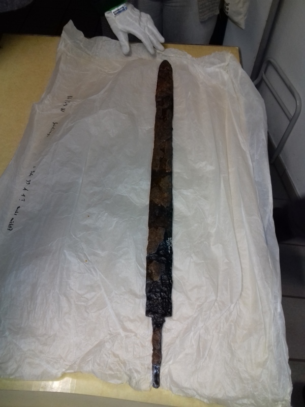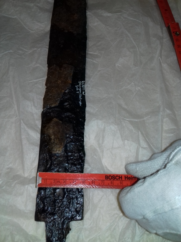 Die Spathas hatten alle mindestens 5cm in der Breite und zwischen 75-85cm reine Klingenlänge. Ich bin so was von happy über die Sachen. Wir konnten ein Sax in sehr guter Qualität 1:1 auf einen Karton übertragen. Somit haben wir nun die genauen Maße und Zierllinien um ein paar Saxe aus dem Zollernalbkreis zu reproduzieren.