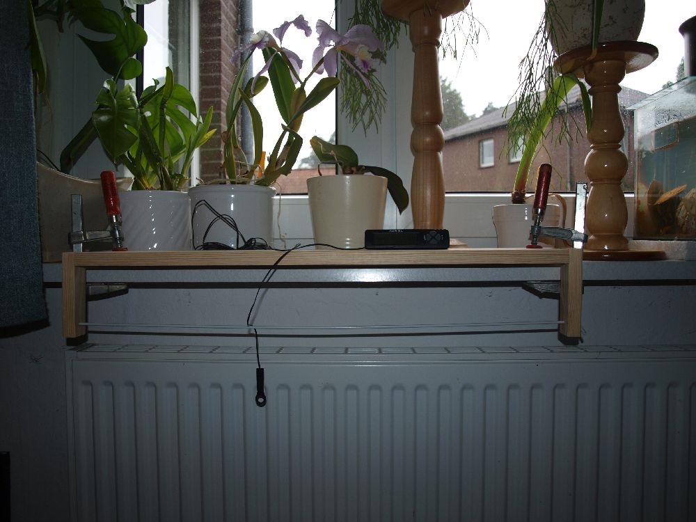 Heute morgen noch schnell eine einfache Konstruktion für die Fensterbrettbefestigung über dem Heizkörper gebastelt.