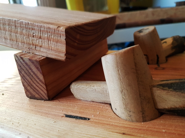 Die Keile immer aus härterem Holz als das zu befestigende Stück machen (z.B. Buche)!
