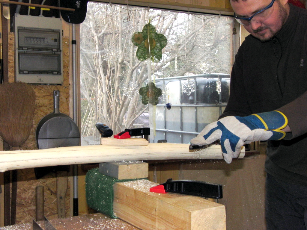 Heute Mittag habe ich mit meinem Lieblingswerkzeug, einer Sägeraspel, die Breite ausgearbeitet.