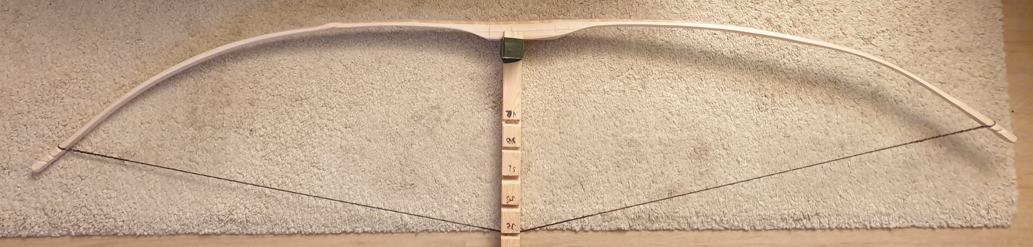 Dann würde sogar die 60" Sehne vom letzten Versuch drauf passen. Und im schlimmsten Fall habe ich halt ein wenig geübt...