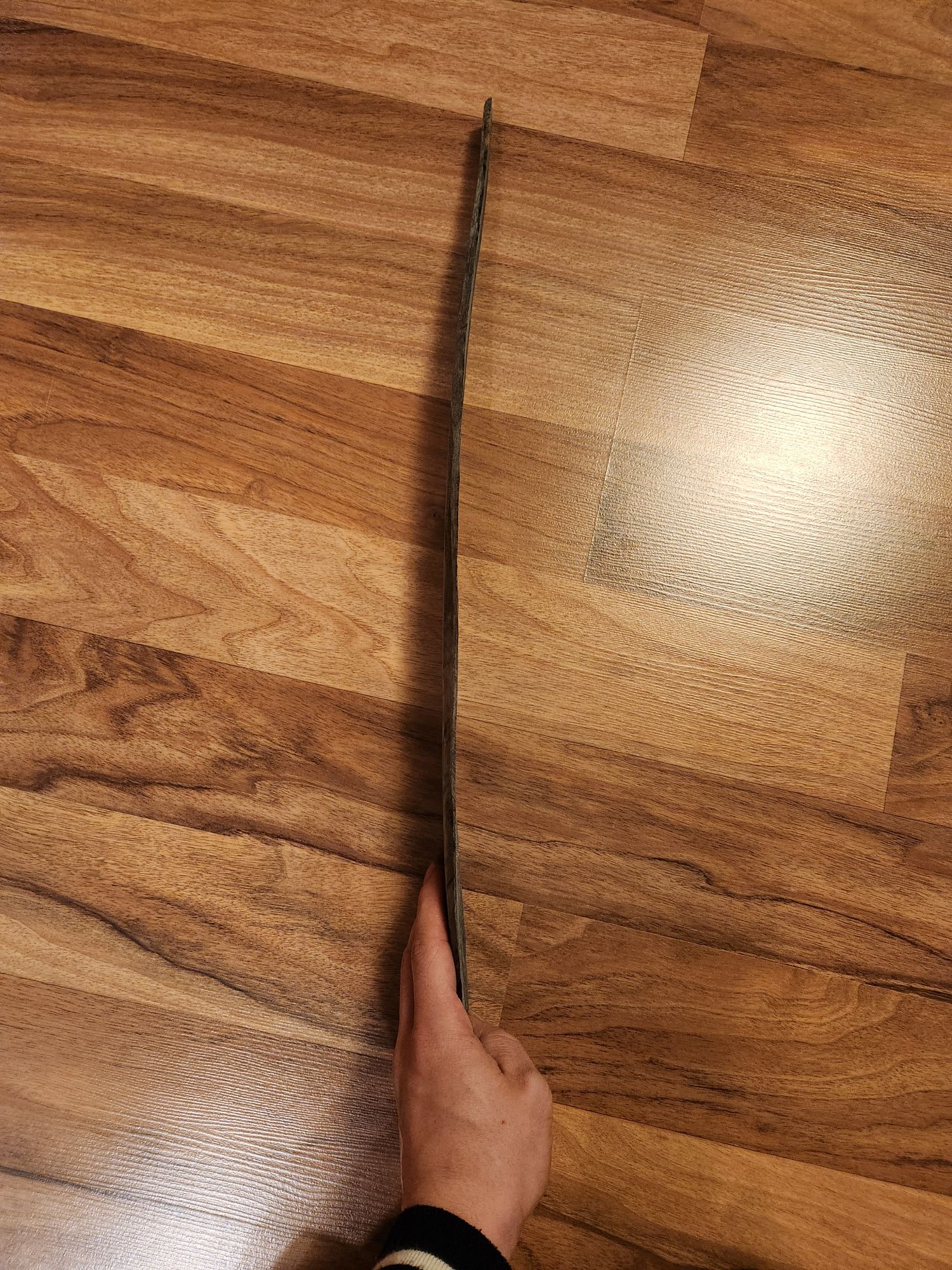 Zur Erklärung, ich hab ja meine damaligen Versuche alle mit Bambus gestartet weil ich da noch keinen Zugang zu frischem Holz hatte. Und da ich jetzt festgestellt hab dass das Holz was ich jetzt habe wohl Qualitativ einfach nicht ausreicht scheint es mir wieder Sinnvoll auf Bambus zurückzugreifen. Und vorm Spleißen hab ich ja auch immer Angst (was die Fertigungspräzision angeht) weshalb ich die Wurfarme aus einem durchgehenden Streifen machen werde und eine Griffschale vorne aufsetze. Ich weiß das ist auch etwas riskant aber ist mir im Moment sympathischer. Ich hab die Beschreibung für den Bau eines Koreanischen Kompositbogens im TBB 3 durchgelesen. Da steht dass nicht die Außenseite vom Bambus genommen wurde sondern dass da ein planer Streifen gefertigt wurde und dass das Bambus auf nur 3mm runtergearbeitet werden muss. Deshalb kam mir mein Bambuslaminat wieder in den Sinn, für das ich keine Verwendung hatte. Es hat genau die richtige Länge, 2 Streifen mit 2mm dicke. Und da der Griff ja relativ stark reflex gebogen werden muss und mir meine bisherigen biegeversuche mit Bambus immer in die Hose gingen, werde ich die beiden Streifen in einer Form laminieren.
