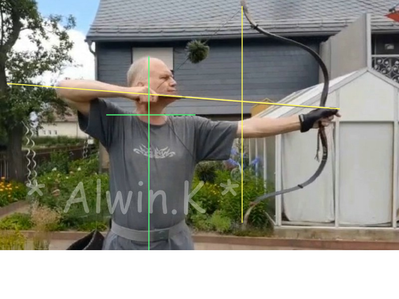 Ich bin kein Khatra-Fachmann, mir fallen lediglich (erkennbar an den Linien/Winkeln) Unterschiede zu anderen Fotos/Videos zum Schießen mit dem Khatra im Netz auf... Bei meinen Anfängern (egal welcher Bogen) achte ich immer auf einen genau waagerechten Abschuss, damit die Körperhaltung und das Körpergefühl zunächst einmal (ohne zu sehr auf das Zielen/Treffen zu achten) eingeübt werden kann. Mitte der Scheibe daher auf Kinnhöhe... Dazu ist auch ein passendes Material (incl. Nockpunkt/Griff/Sehnenstärke/Pfeilgewicht) erforderlich. Viel Erfolg!