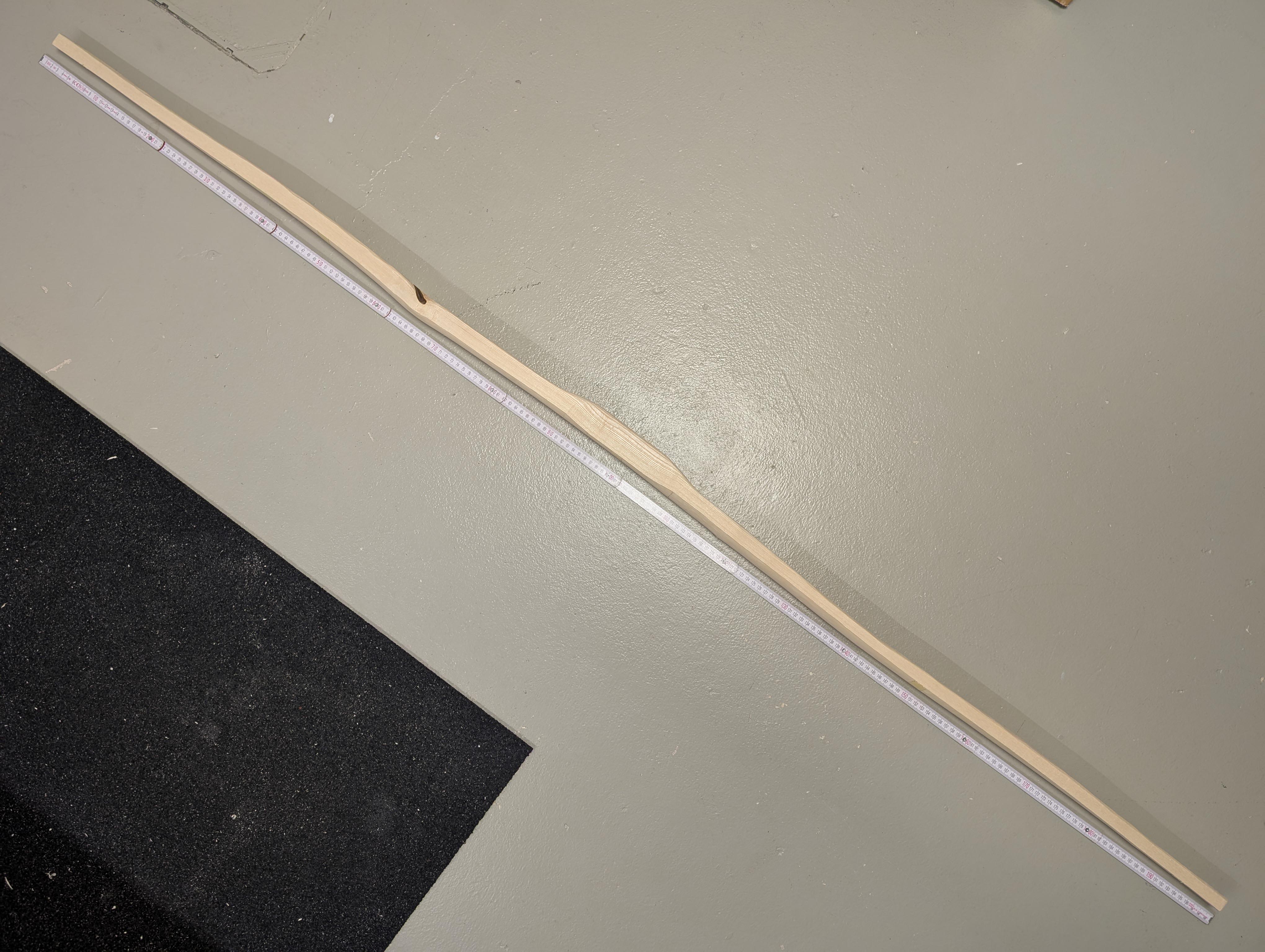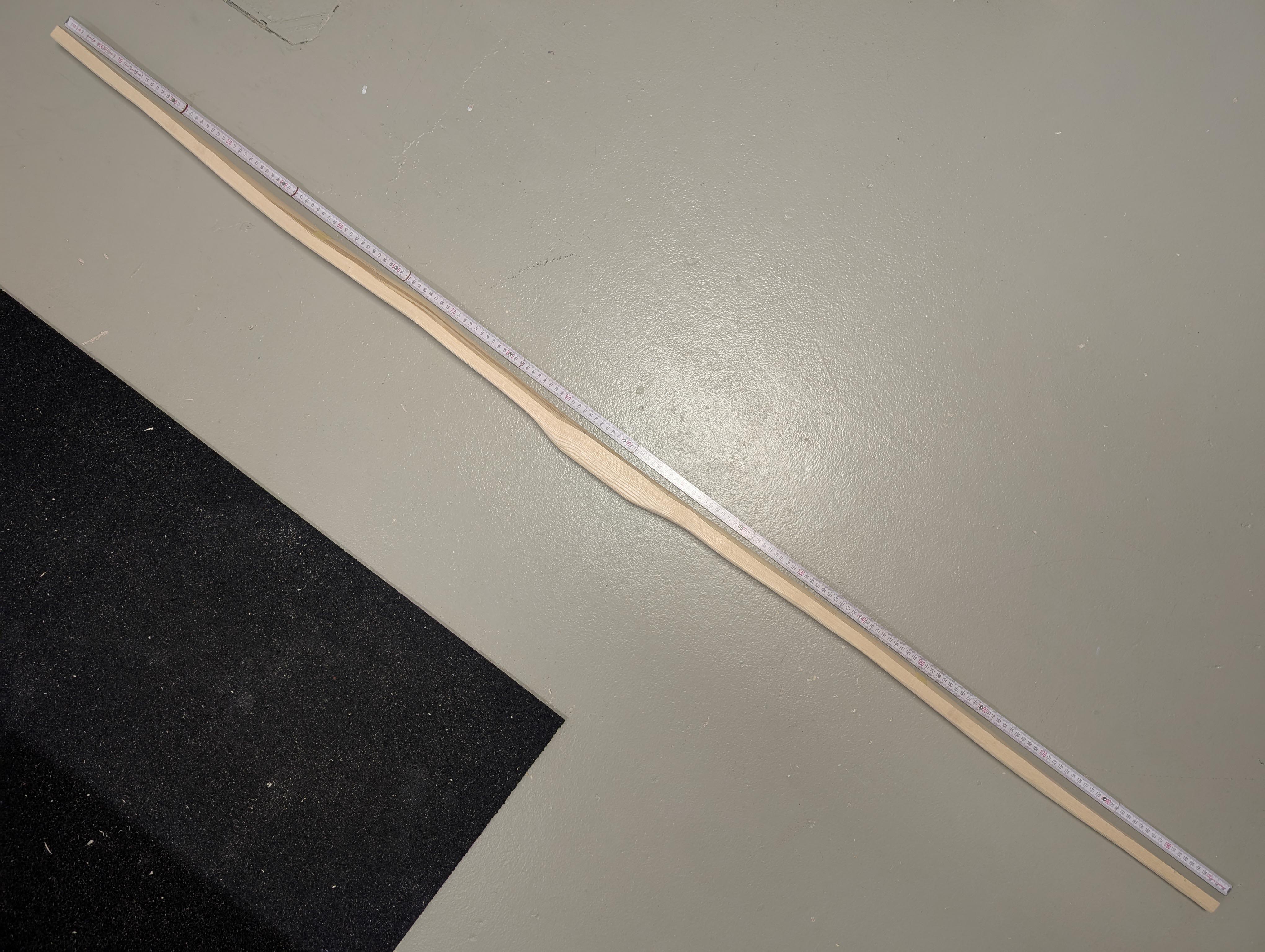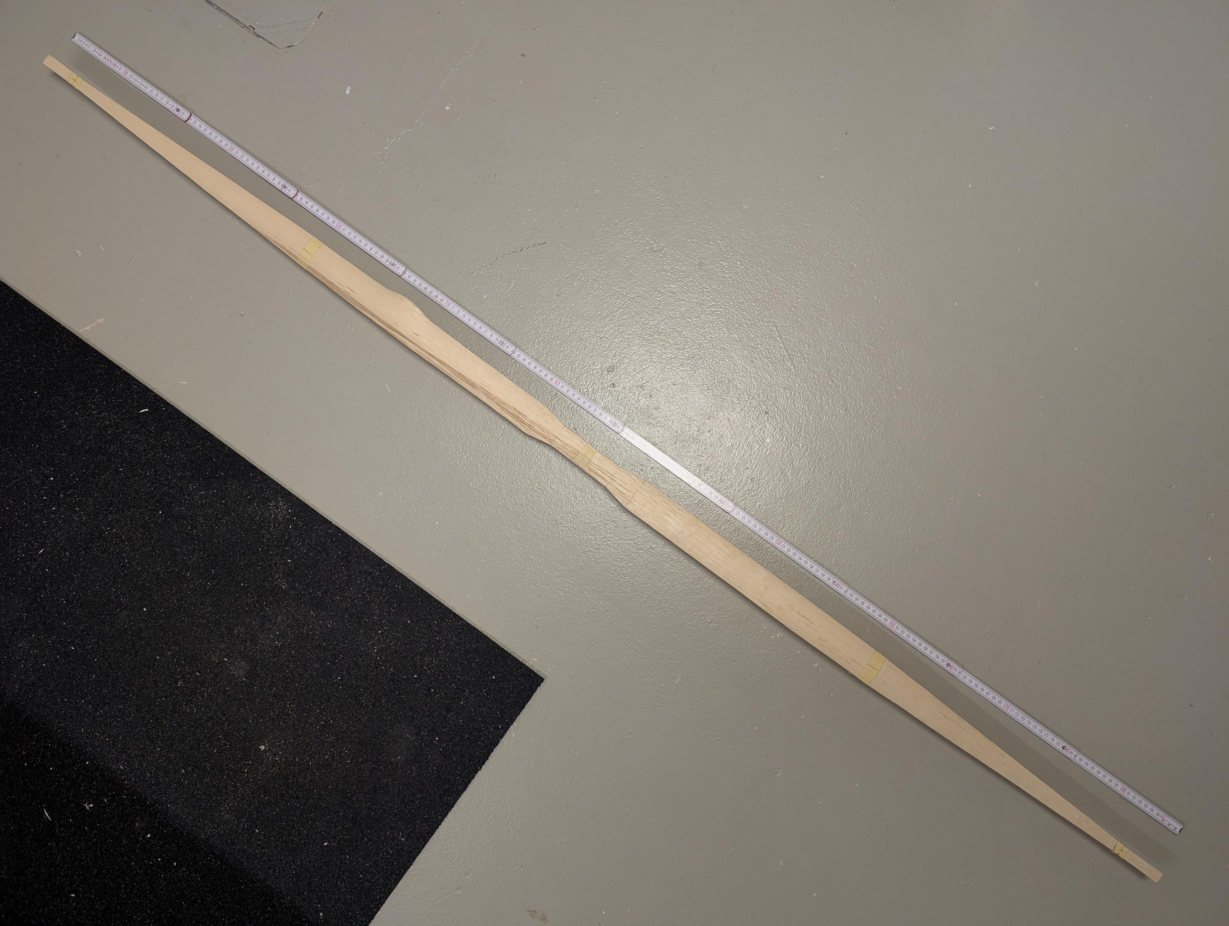 Bei Selfbows musst du während des Baus immer auf das Holz „Hören“, du kannst nicht immer das gleiche Design jeden Stave anwenden. Jetzt schon zu sagen, wie lang der Bogen wird, was oben und unten ist halte ich für leichtsinnig. Du zwingst dem Holz deine Vorstellungen auf, besser ist du hörst auf das Holz was möglich ist.