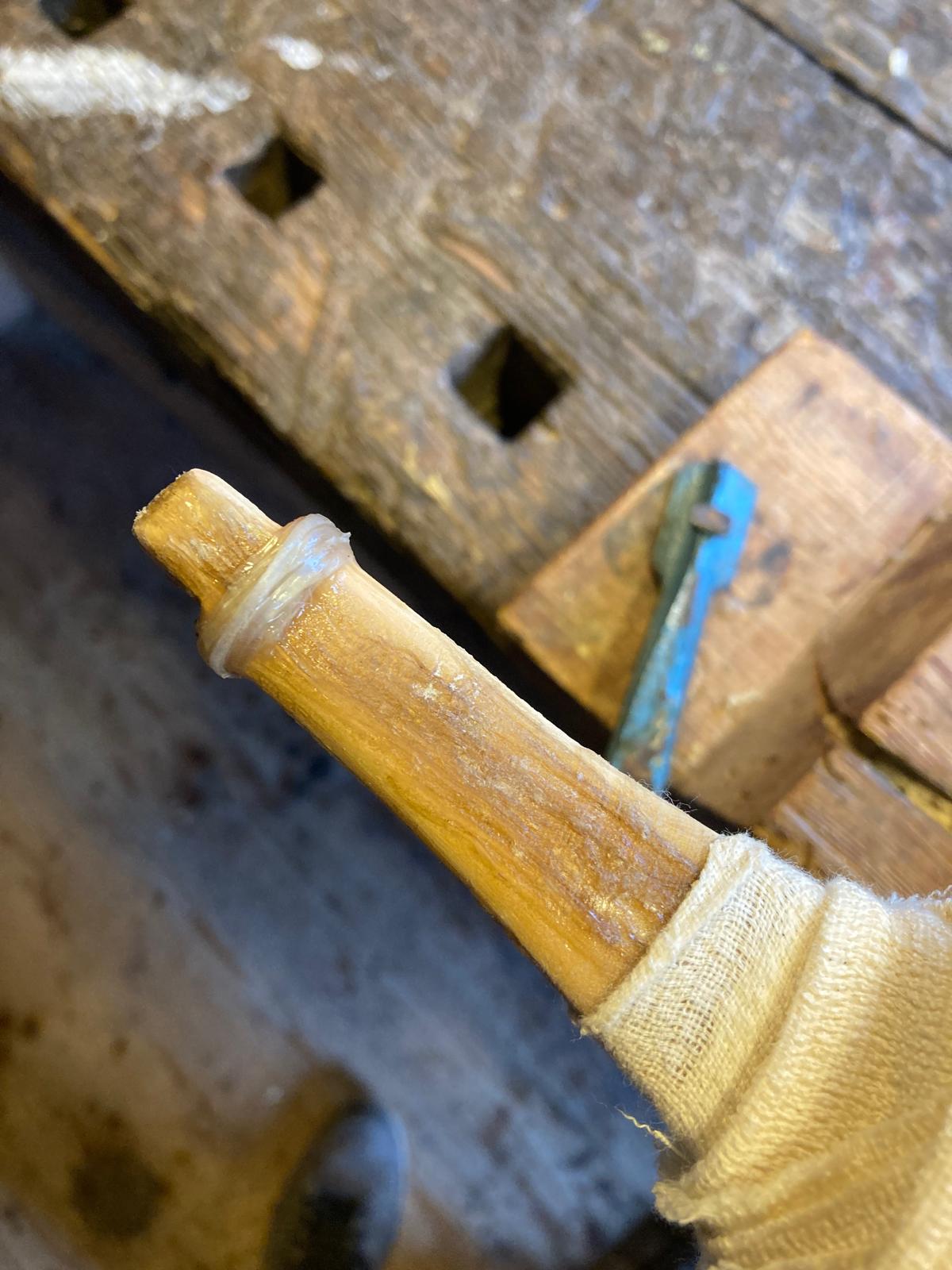 Der Bogen ist im Original mit Sehnen belegt und umwickelt. Weiss vielleicht jemand, warum er zusätzlich umwickelt wurde?