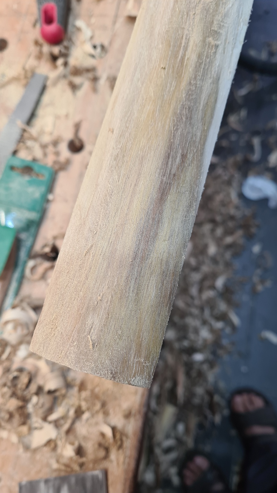 Den unbearbeiteten WA gedämpft. Insgesamt ist das Holz nachdem ich die Rinde entfernt habe noch zu nass.