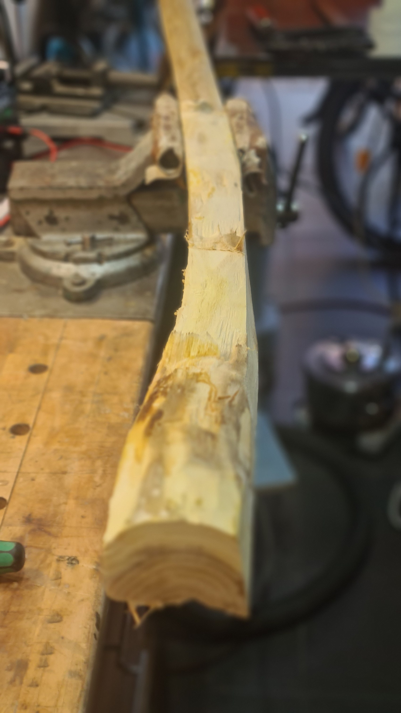 Der Splint ist ziemlich vergammelt, geht teilweise in den ersten Spätholzring. Ich versuche jetzt bis zum 2 Spätholzring vorzuarbeiten.