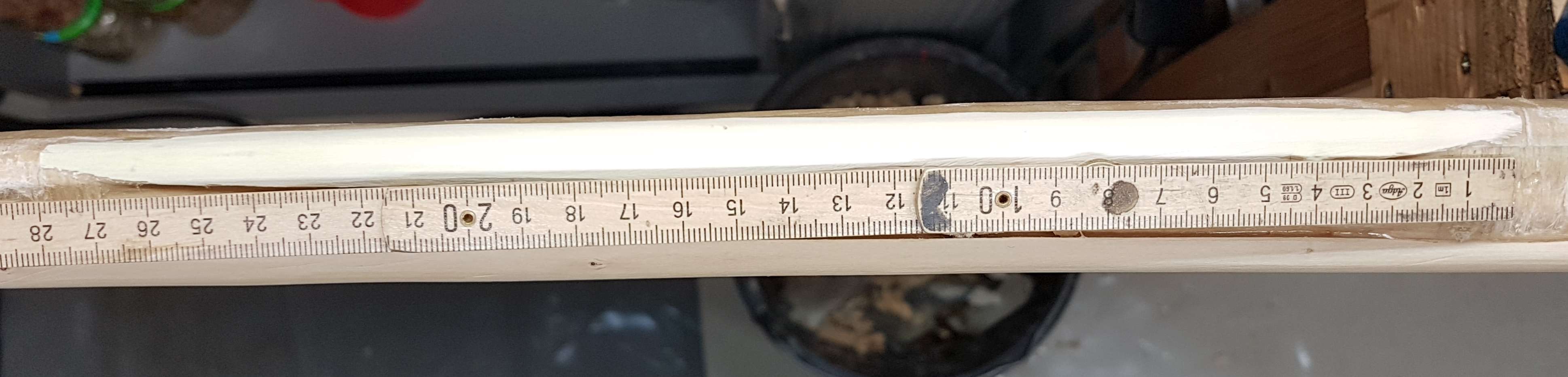 der zusätzlich Flicken, die Wicklung von gestern habe ich wieder entfernt, sonst hätte ich ja den neuen Stab nicht kleben können