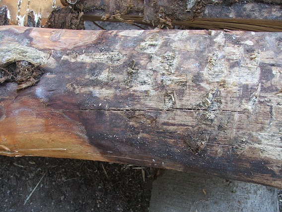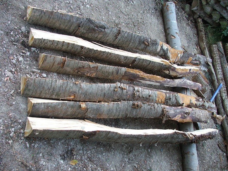 Direkt entrindet und gespalten / geviertelt. Eibe hat natürlich noch Rinde...