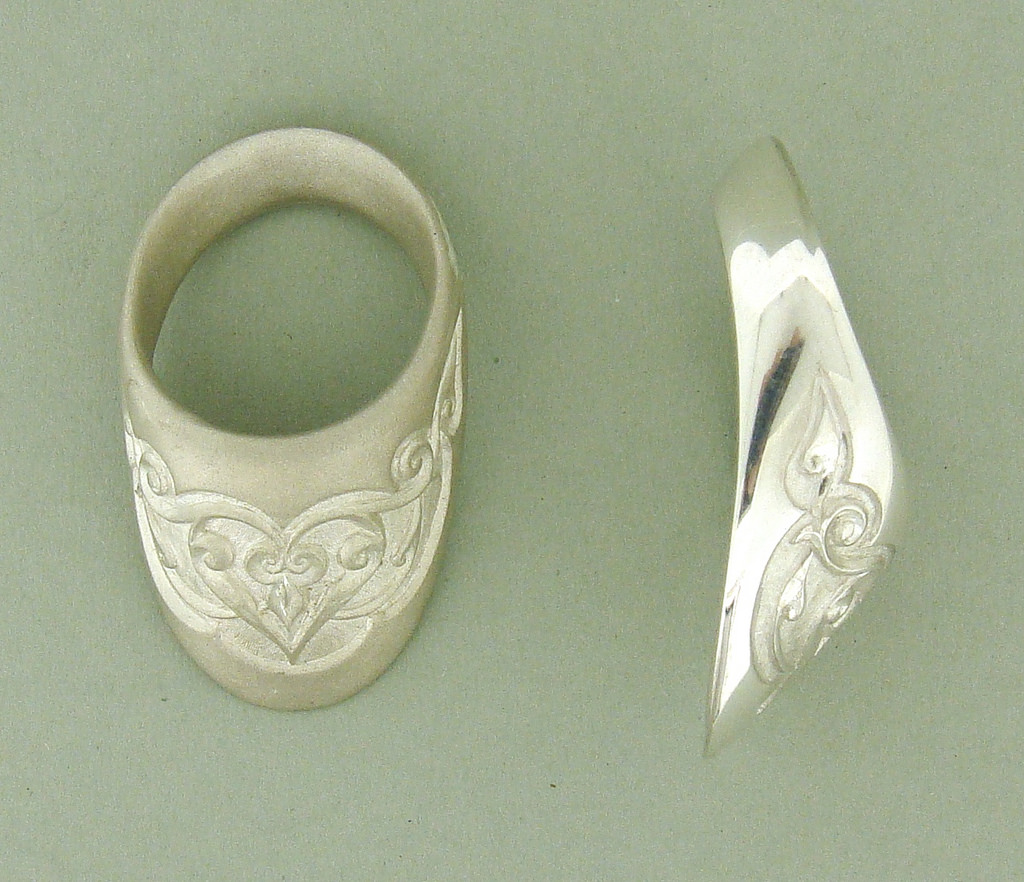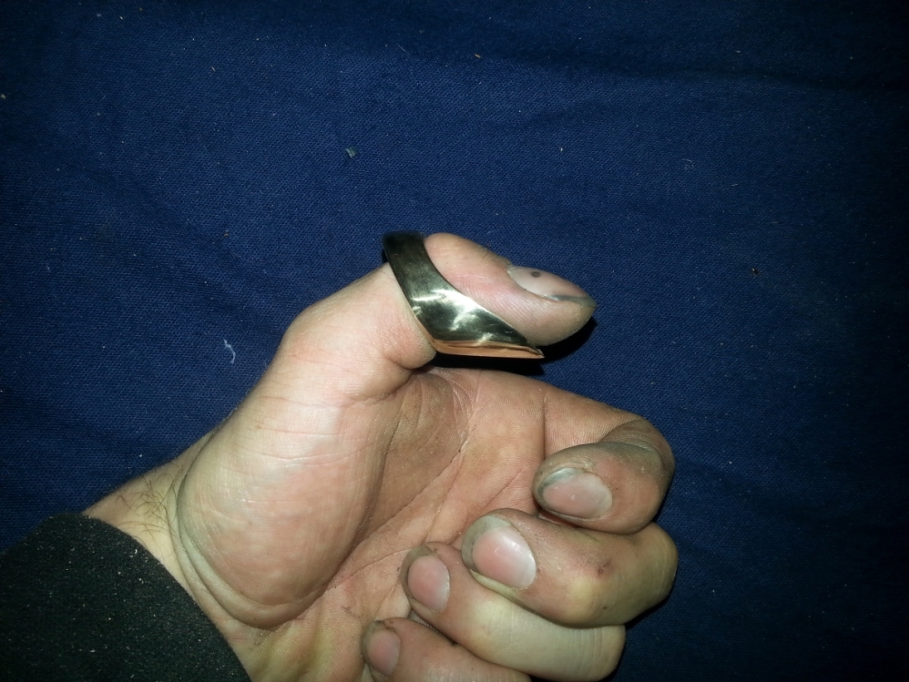 Ich schieße daher mit einem handgefertigten Ring aus Knochen oder Geweih - schon seit mehreren Jahren. Das Daumengelenk ist mir dabei sowohl nach intensiveren Trainingseinheiten von 2-3 Stunden sowie auch im allgemeinen noch nie irgendwie derart angeschwollen, dass ich an Folgetagen etwa einen größeren Ring gebraucht hätte.